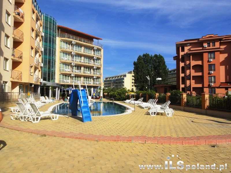 Przestronny dwupokojowy apartament w niezwykle okazyjnej cenie 17.400 euro (ponad 30.600 EUR taniej od pierwotnej ceny zakupu, jaką zapłacił obecny sprzedający, kupując apartament bezpośrednio od developera kilka lat temu, gdyż wówczas za to mieszkanie zapłacił 48.000 euro plus koszty umeblowania i wyposażenia, a obecnie apartament wystawiony jest do sprzedaży z częściowym umeblowaniem i wyposażeniem za jedyne 17.400 EUR, czyli tylko za jedyne 252,17 EUR/M2 brutto) w trzygwiazdkowym kompleksie apartamentowo hotelowym ***Black Sea, zlokalizowanym w północno zachodniej, bardzo spokojnej części znanego bułgarskiego kurortu nadmorskiego- Słoneczny Brzeg- Sunny Beach, blisko plaży nad Morzem Czarnym w Bułgarii.