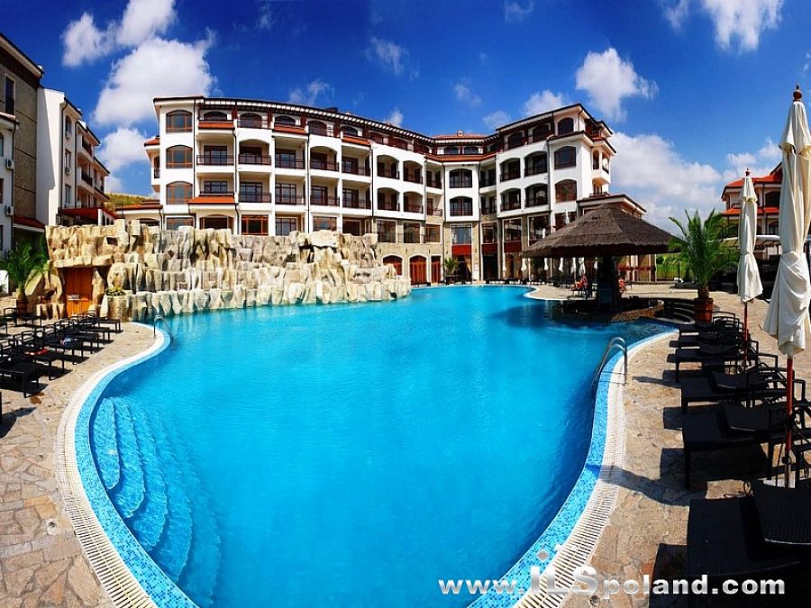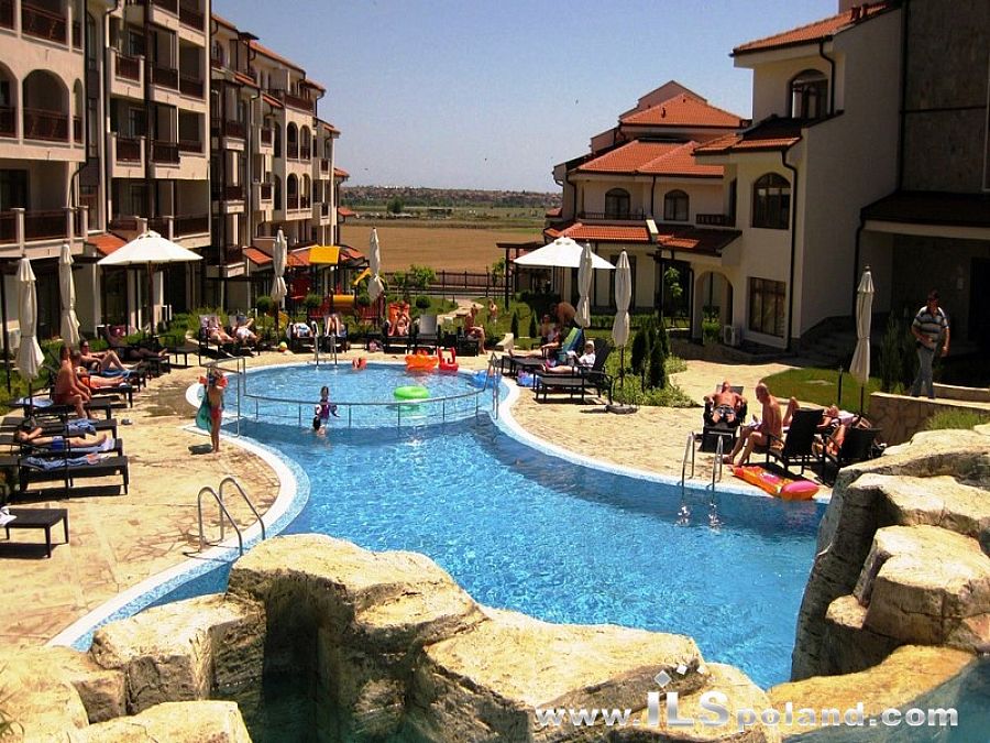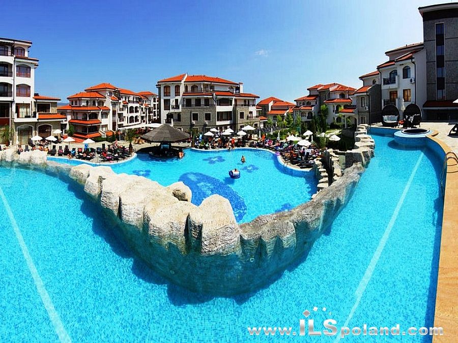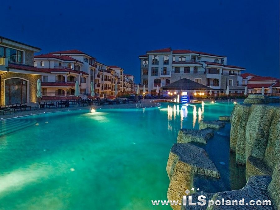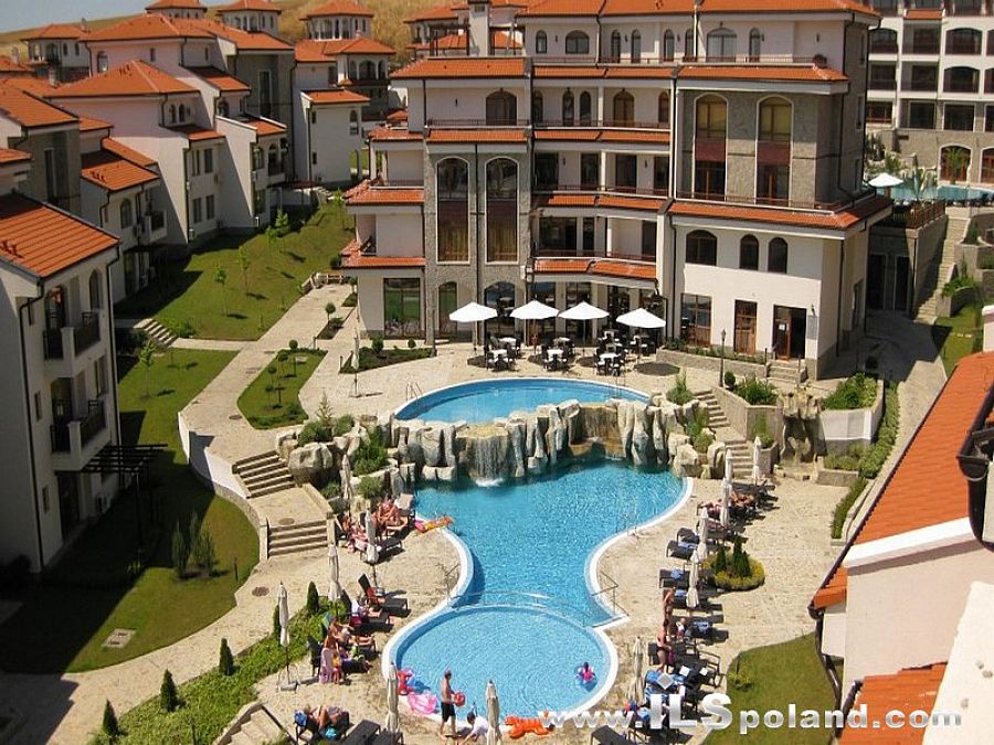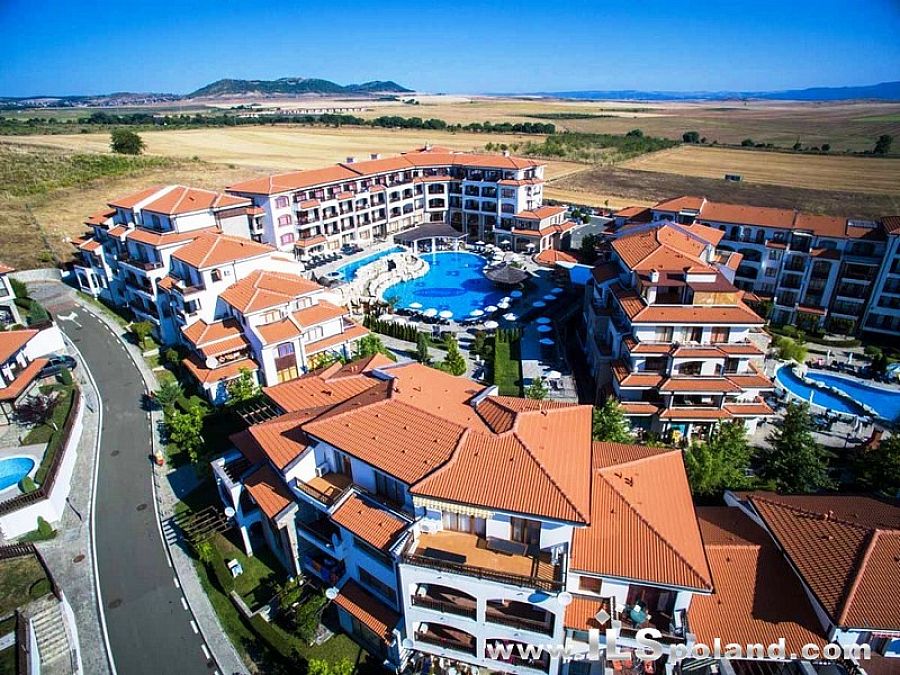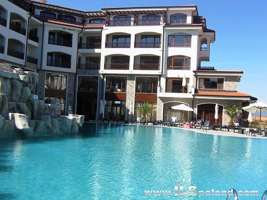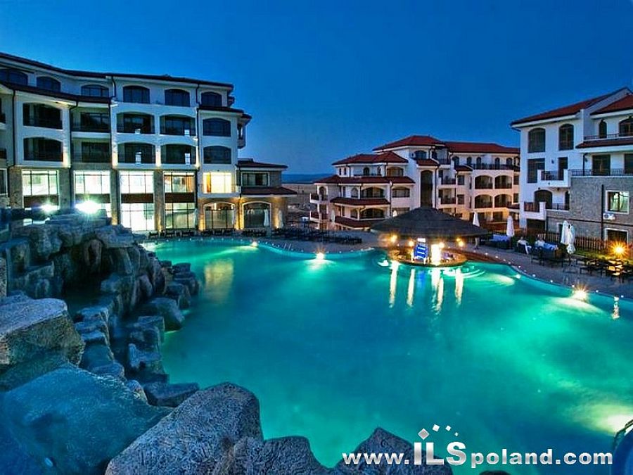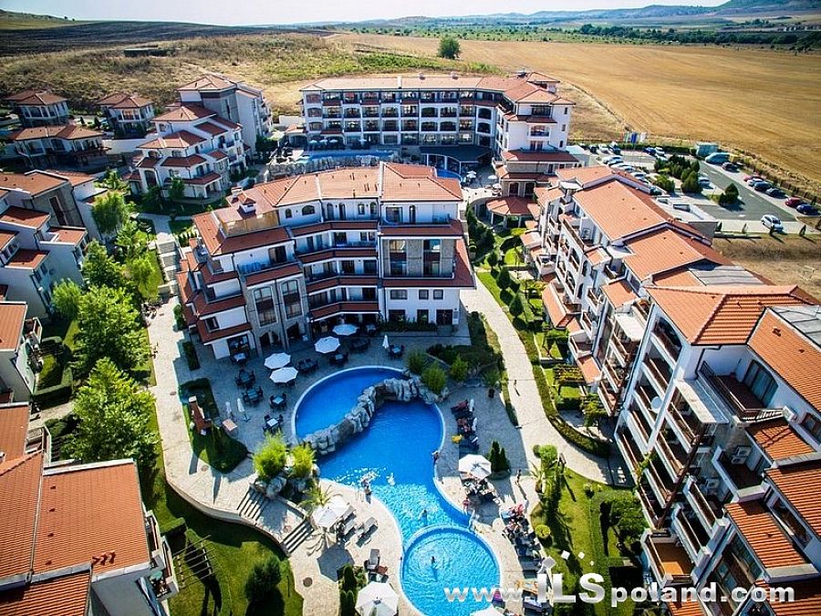 Wystawny apartament z umeblowaniem i wyposażeniem oraz z widokiem na morze i basen w bardzo okazyjnej cenie, w całorocznym, pięciogwiazdkowym kompleksie (5*) The Vineyards Spa Resort, wybudowanym na tle zatoki w miejscowości Aheloy, nad niewielką mariną (eleganckim portem dla jachtów i łodzi rybackich), 3 km od plaży Morza Czarnego w Bułgarii.