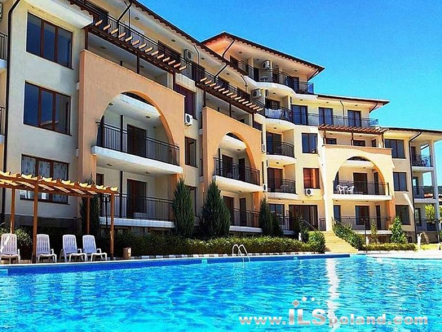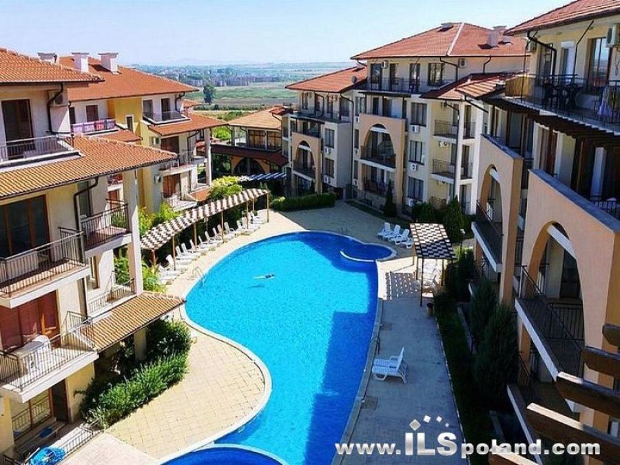 Kompaktowy, zupełnie nowy apartament z widokiem na basen w mega okazyjnej cenie, w eleganckim, całorocznym kompleksie Arkite, zlokalizowanym w odległości zaledwie 2 km od plaży i Morza Czarnego, blisko zachodniej, bardzo prestiżowej i spokojnej części znanego kurortu nadmorskiego Słoneczny Brzeg na Morzem Czarnym w Bułgarii.