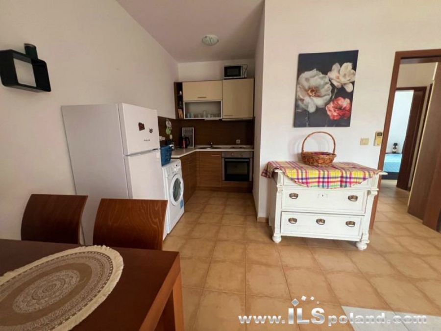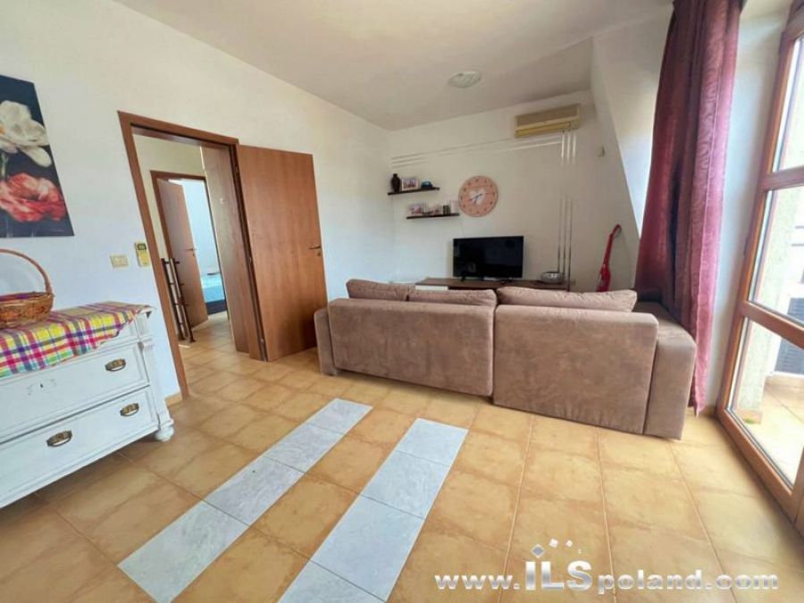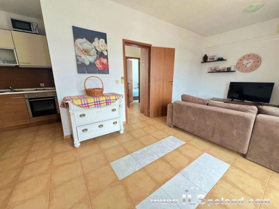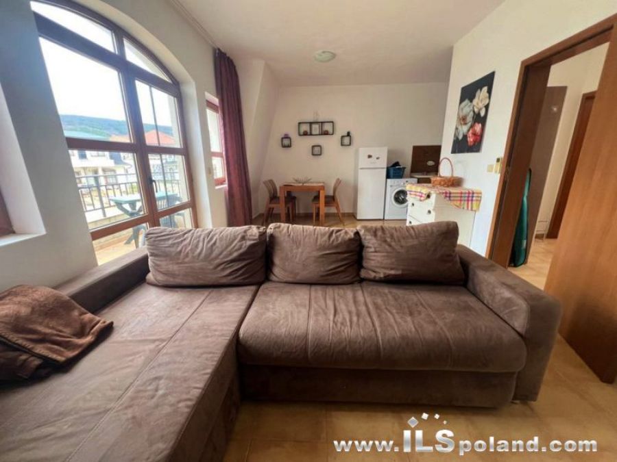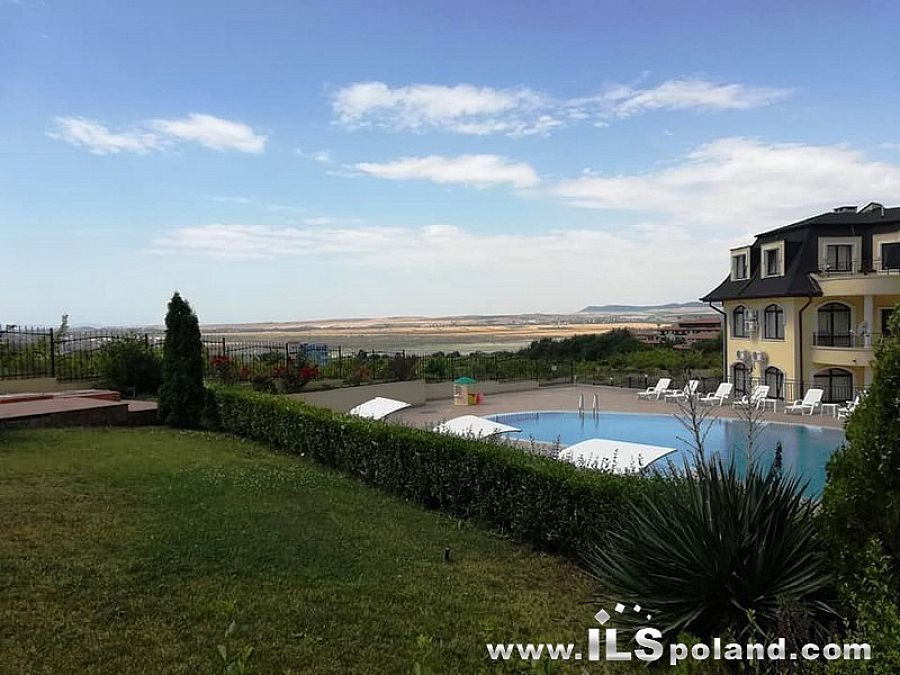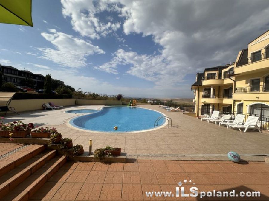 Przestronny apartament trzypokojowy z widokiem na morze i basen, sprzedawany z umeblowaniem i wyposażeniem w bezkonkurencyjnej cenie, zlokalizowany w całorocznym kompleksie NESEBAR VIEW, zaledwie 2 km od plaży i Morza Czarnego.