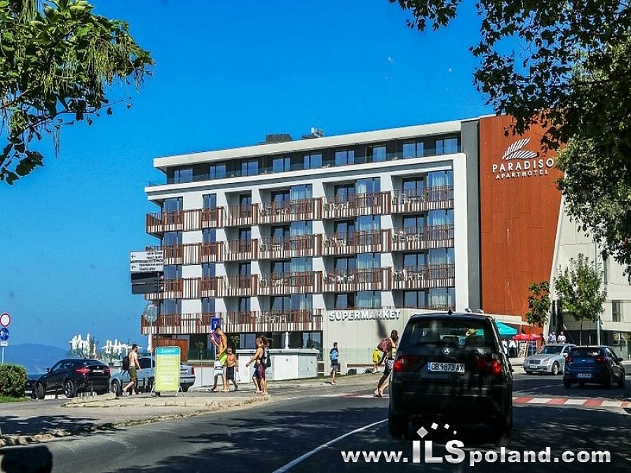 Kompleks Paradiso Aparthotel o bardzo nowoczesnej architekturze, nawiązującej do tradycyjnego, nesebyrskiego stylu, wybudowany został w nowej części miasta Nesebar (Nowe Miasto) w 2016 roku w doskonałej lokalizacji przy morzu (1 linia zabudowy) w odległości zaledwie 30 m od piaszczystej plaży w bezpośrednim sąsiedztwie deptaka, prowadzącego do starego miasta Nesebyr, wpisanego na listę światowego dziedzictwa kulturowego UNESCO.
