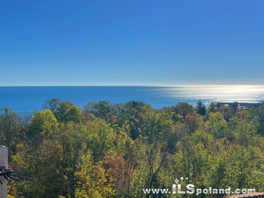 Apartament składa się z salonu z aneksem kuchennym, sypialni, przedpokoju-korytarza z garderobą, łazienki z WC i wanną oraz balkonu z uniklanym, bezpośrednim widokiem na morze, las i kompleks basenów (widok od strony wschodniej).