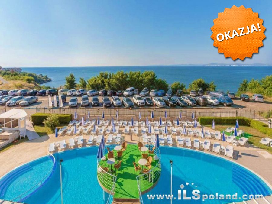 Apartament z widokiem na morze oraz z umeblowaniem i wyposażeniem w wyjątkowo konkurencyjnej cenie w renomowanym kompleksie apartamentowym, położonym w pierwszej linii zabudowy przy morzu, na skarpie w kurorcie Ravda na południe od Nesebaru i Słonecznego Brzegu nad Morzem Czarnym w Bułgarii.