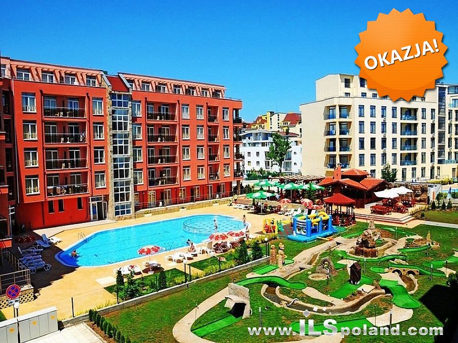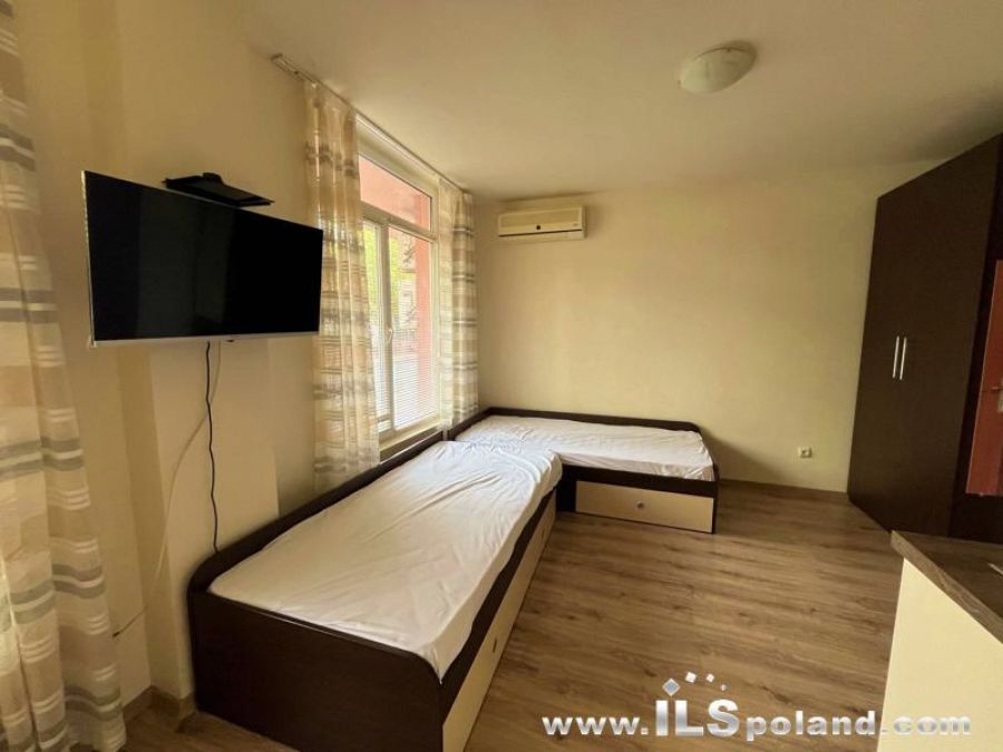 Kompaktowy apartament z umeblowaniem i wyposażeniem w mega okazyjnej cenie, w eleganckim, całorocznym kompleksie apartamentowym RAINBOW 2, zlokalizowanym w bardzo prestiżowej i spokojnej części znanego bułgarskiego kurortu nadmorskiego Słoneczny Brzeg blisko plaży nad Morzem Czarnym w Bułgarii.