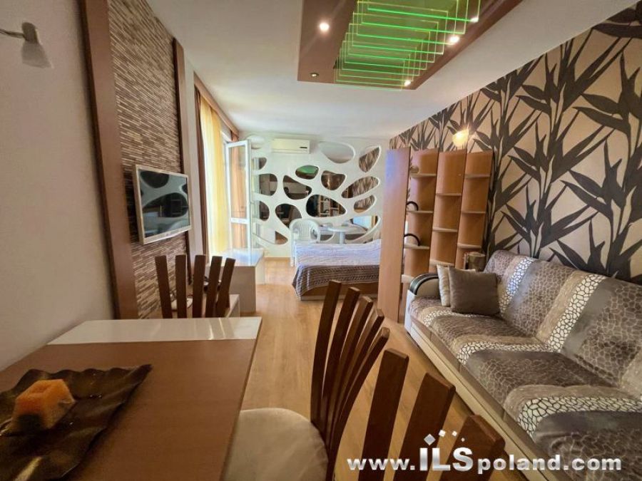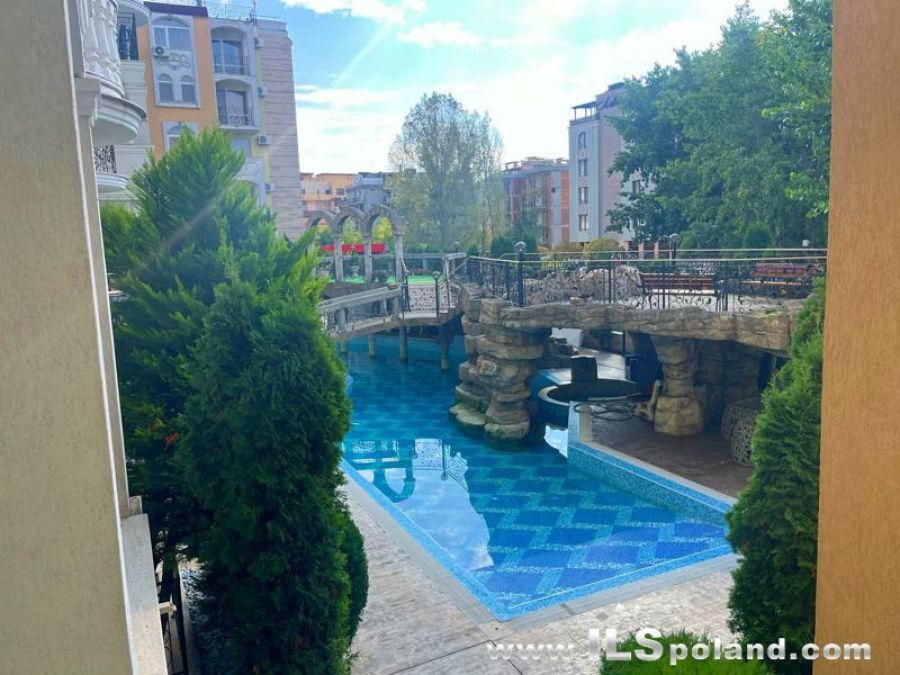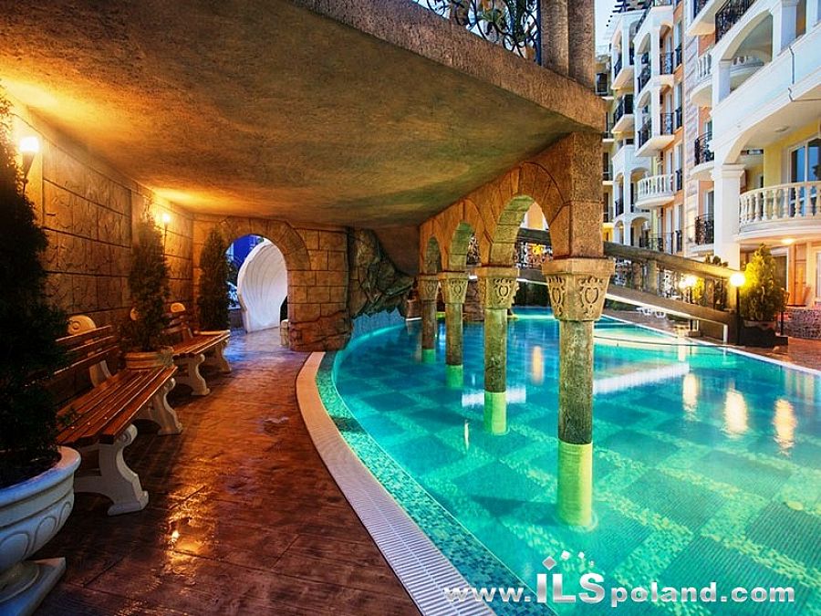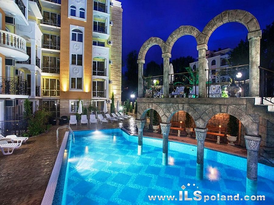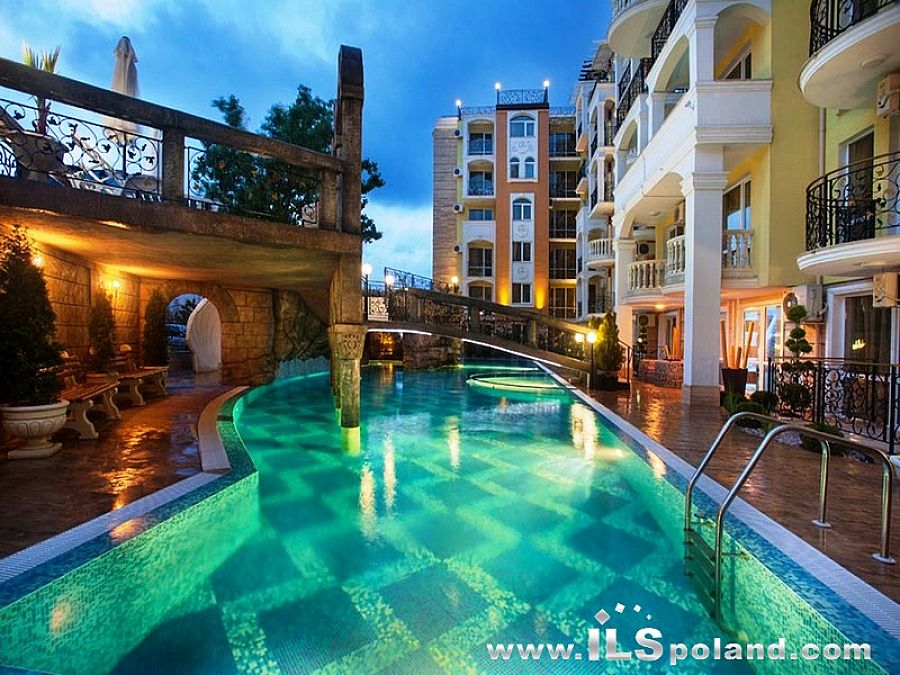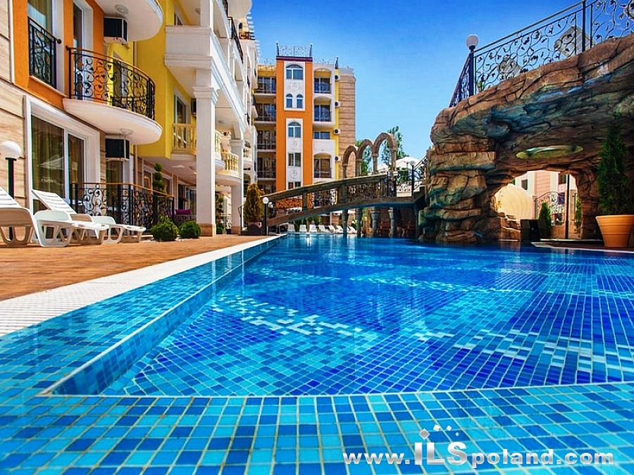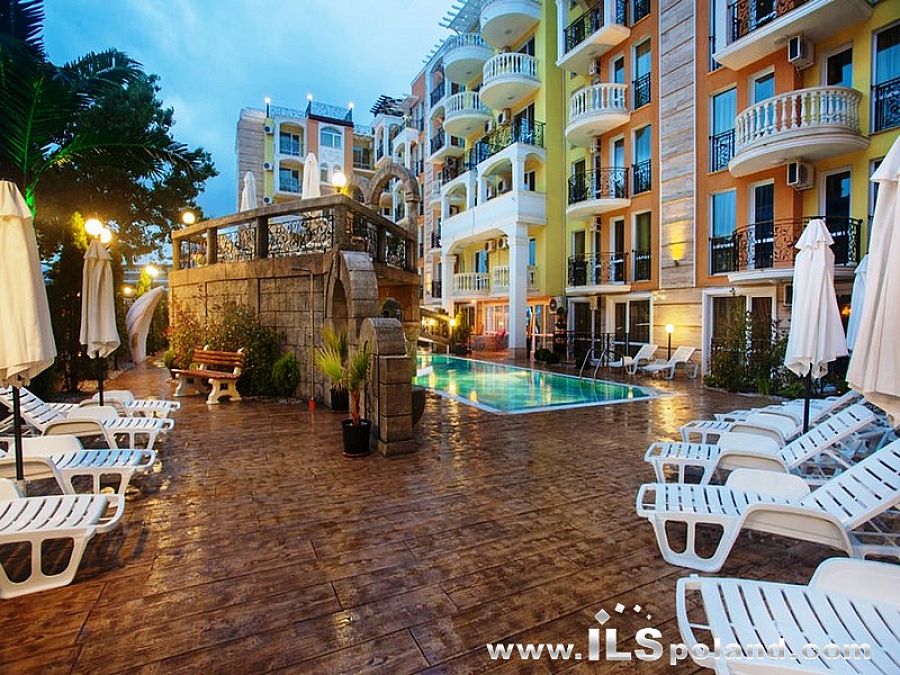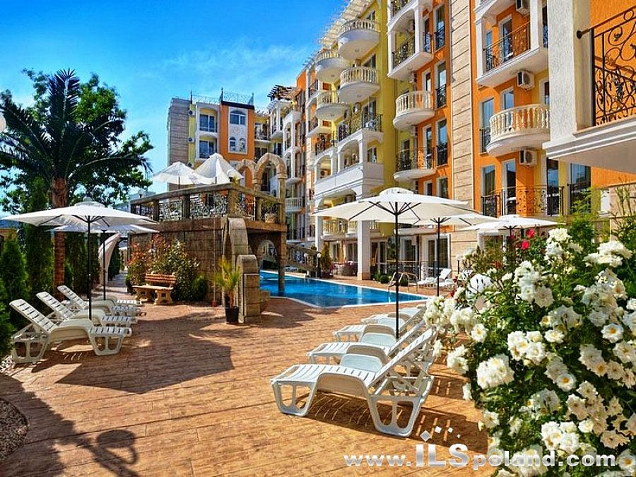 Wystawny, kompaktowy apartament z widokiem na basen oraz z umeblowaniem i wyposażeniem w okazyjnej cenie, w wyjątkowym, luksusowym, całorocznym kompleksie apartamentowym Sweet Homes 2, w południowej części najbardziej znanego bułgarskiego kurortu Słoneczny Brzeg nad Morzem Czarnym w Bułgarii tylko 500 m od plaży nad Morzem Czarnym w Bułgarii.