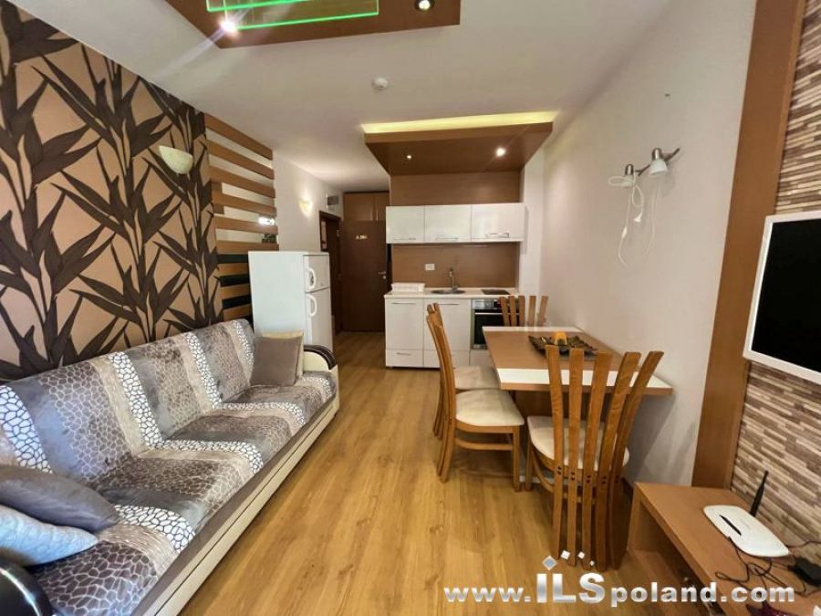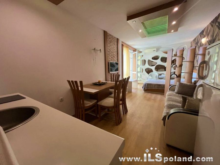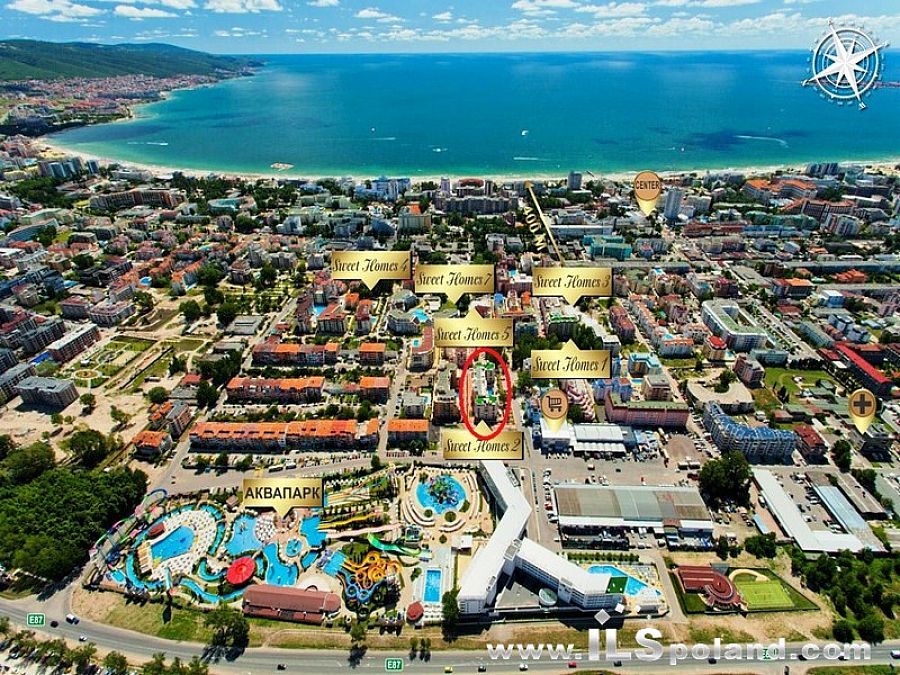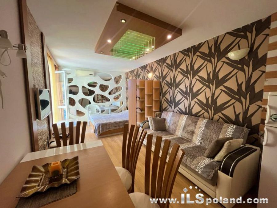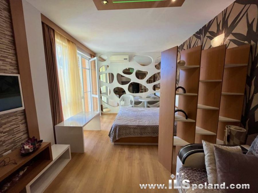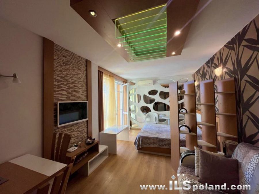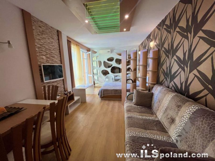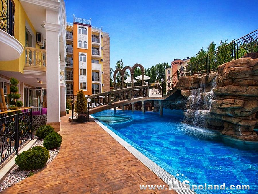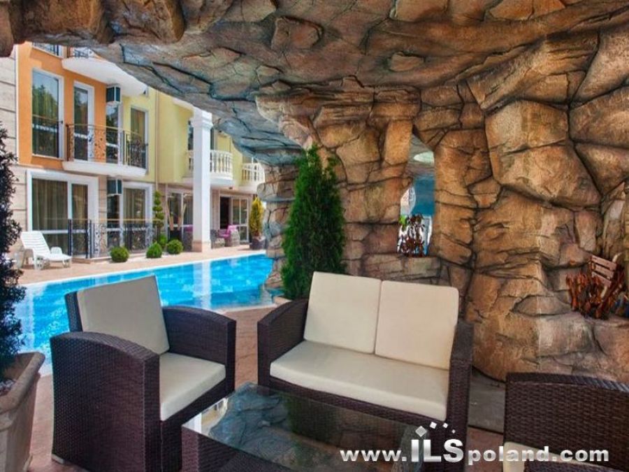 Wystawny, kompaktowy apartament z widokiem na basen oraz z umeblowaniem i wyposażeniem w okazyjnej cenie, w wyjątkowym, luksusowym, całorocznym kompleksie apartamentowym Sweet Homes 2, w południowej części najbardziej znanego bułgarskiego kurortu Słoneczny Brzeg nad Morzem Czarnym w Bułgarii tylko 500 m od plaży nad Morzem Czarnym w Bułgarii.