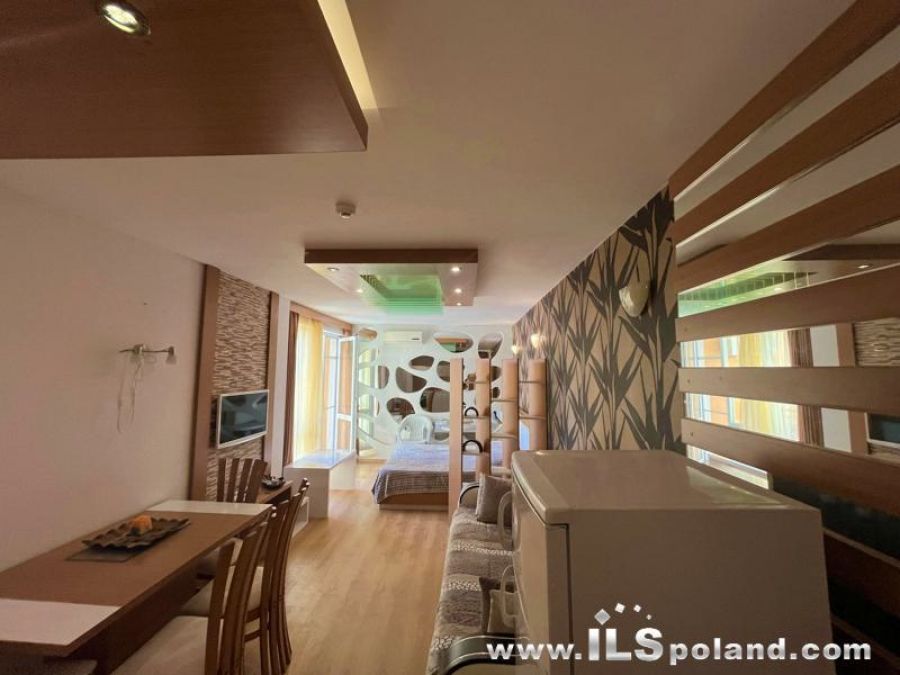 Wystawny apartament jednopokojowy typu studio o powierzchni całkowitej 45,10 m2 i powierzchni użytkowej 33,94 m2, położony na 1 piętrze- 2 kondygnacji- bułgarskie 2 pietro (obszerną galerię aż 68 fotografii z zewnątrz kompleksu i z wewnątrz apartamentu oraz film MP4 z wewnątrz mieszkania prezentujemy wyłącznie w naszym firmowym serwisie WWW.ILSPOLAND.COM) w luksusowym kompleksie Sweet Homes 2 w najbardziej znanym bułgarskim kurorcie Słoneczny Brzeg.