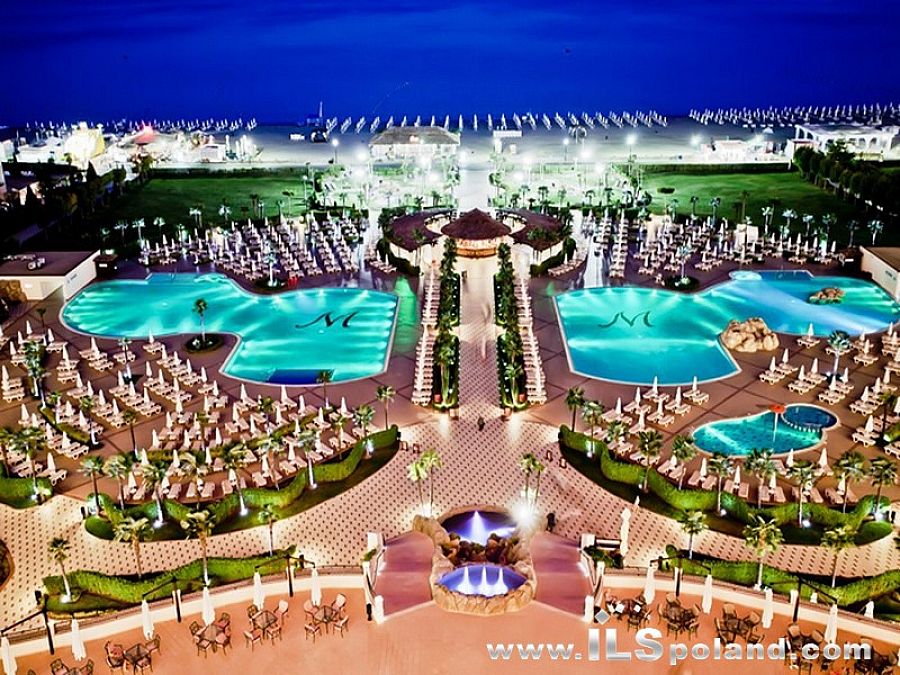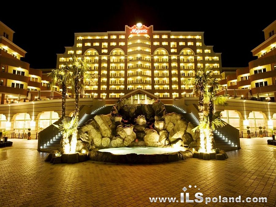 Obiekt Majestic, to czterogwiazdkowy, luksusowy kompleks, umiejscowiony w odległości zaledwie 50 metrów od nadmorskiej promenady i plaży w otoczeniu licznych sklepów, tawern i restauracji oraz centrum rozrywek z pubami i klubami disco. W sąsiedztwie kompleksu znajduje się przystanek kolejki chu-chu, kursującej uliczkami kurortu.