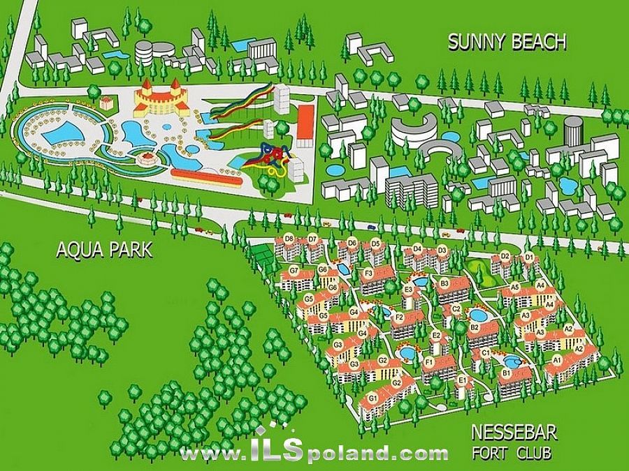 Kompleks Nessebar Fort Club jest kompleksem całorocznym, położonym na działce o powierzchni 15.000 m2, a składającym się z 38 budynków 3 i 4 piętrowych, z których niektóre są połączone ze sobą.