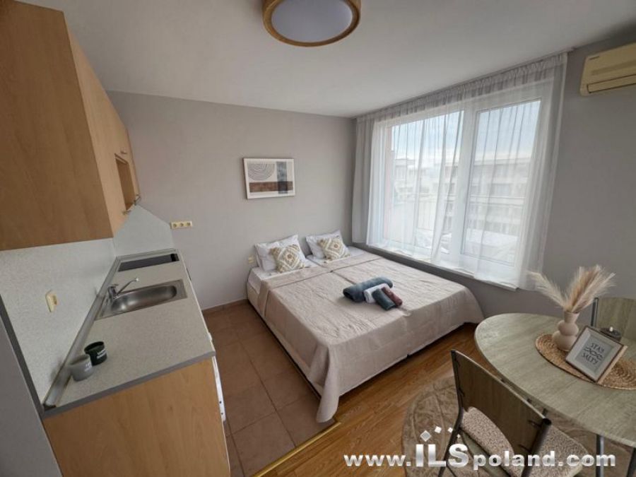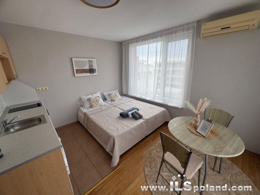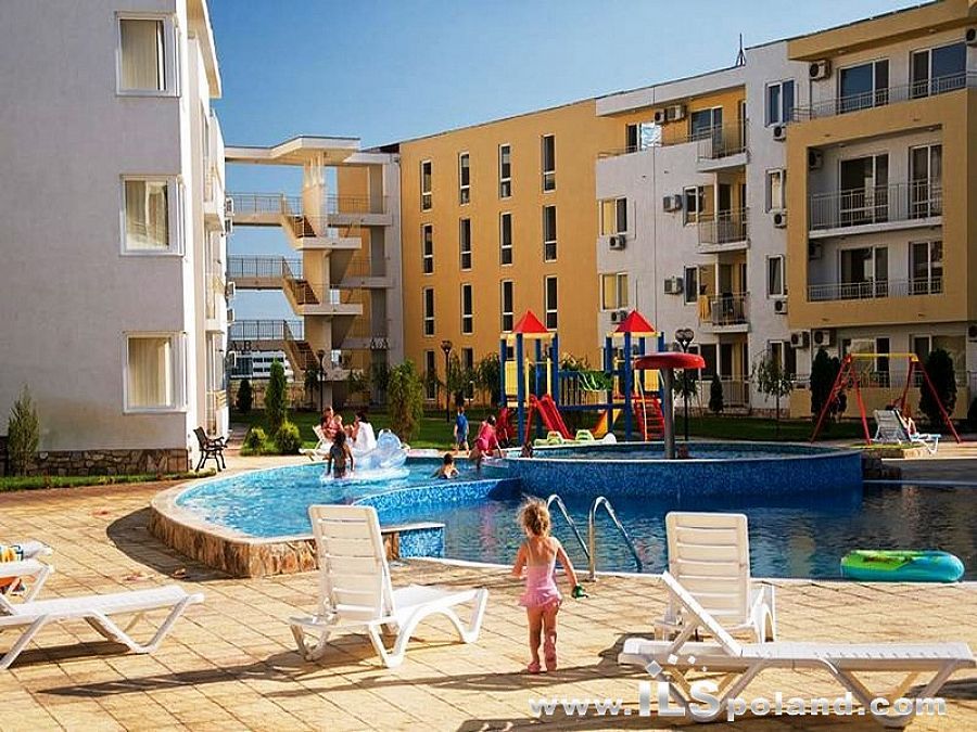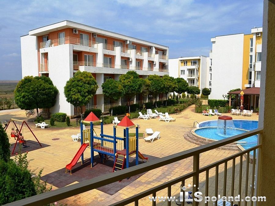 Kompaktowy apartament z widokiem na basen oraz z umeblowaniem i wyposażeniem w bardzo okazyjnej cenie, w całorocznym kompleksie apartamentowym NESSEBAR FORT CLUB, zlokalizowanym blisko wschodniej, spokojnej części znanego bułgarskiego kurortu nadmorskiego Słoneczny Brzeg nad Morzem Czarnym w Bułgarii.