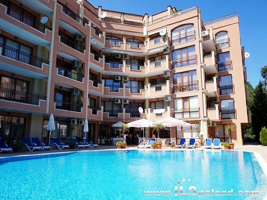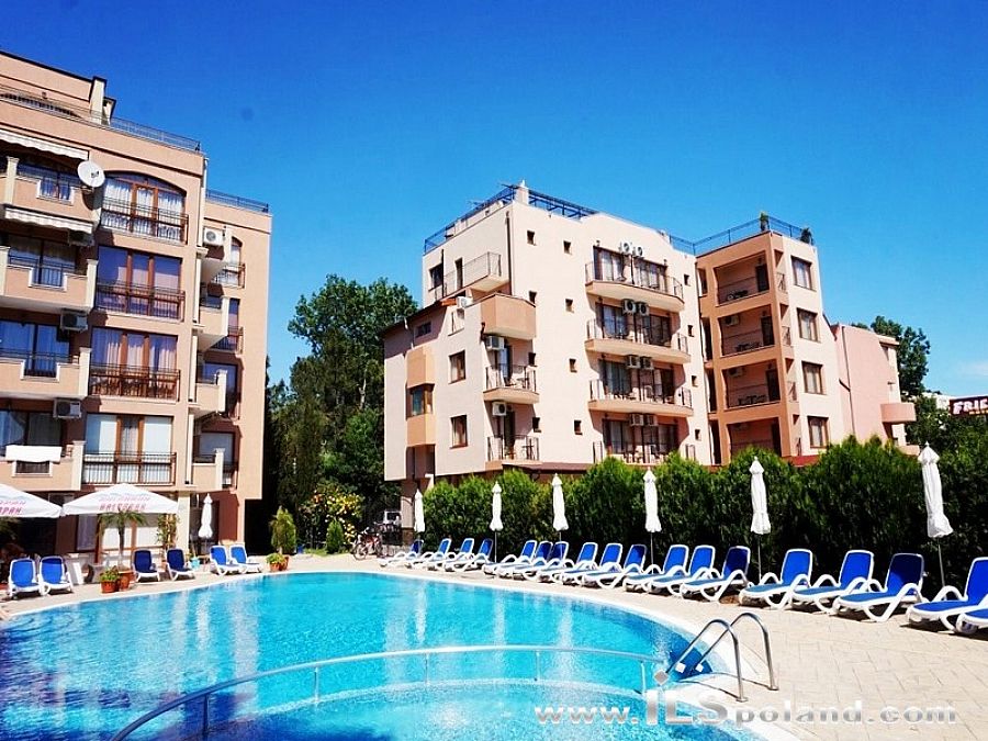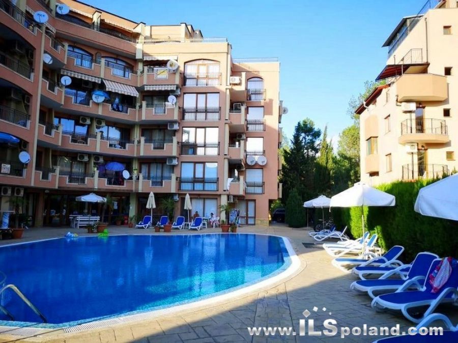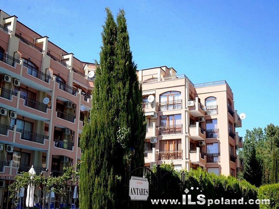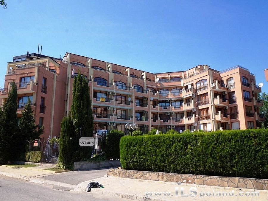 Przestronny apartament z widokiem na basen oraz z umeblowaniem i wyposażeniem w bardzo okazyjnej cenie, w całorocznym kompleksie apartamentowo hotelowym Antares, zlokalizowanym w północno-zachodniej, bardzo spokojnej części, znanego bułgarskiego kurortu nadmorskiego Słoneczny Brzeg, zaledwie 350 m od plaży nad Morzem Czarnym w Bułgarii.