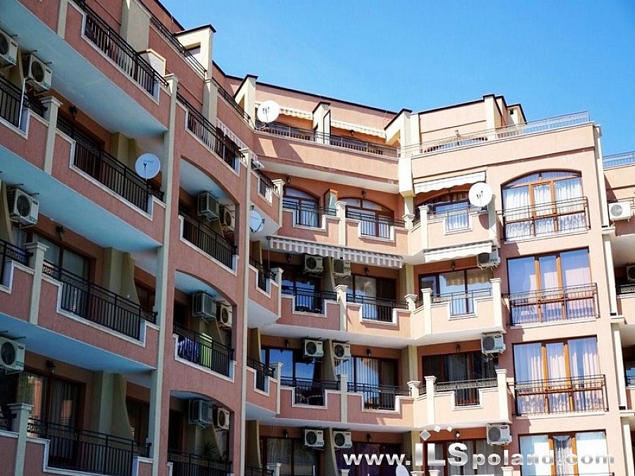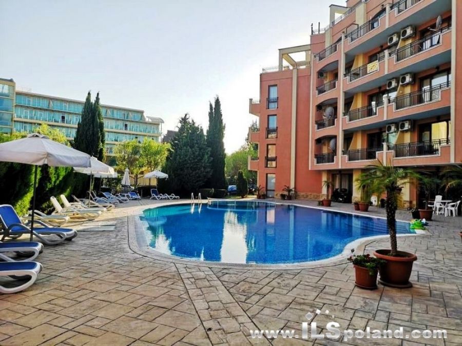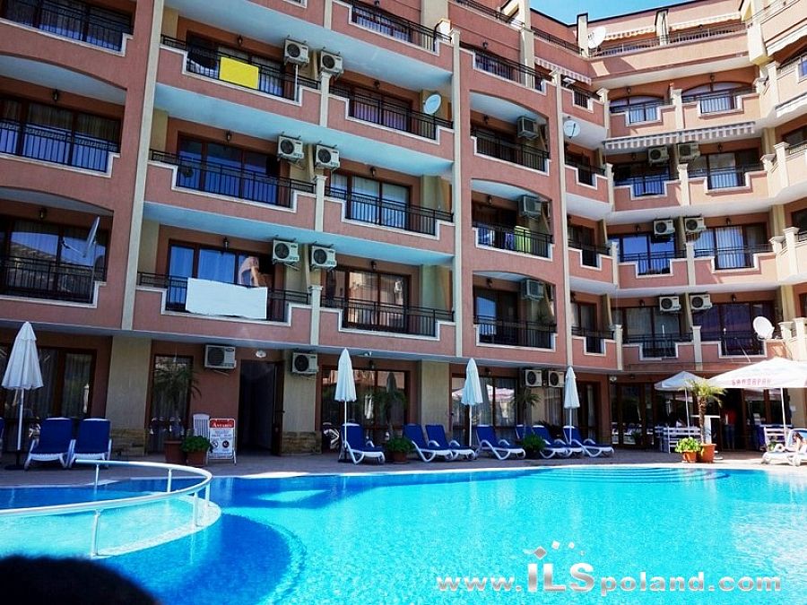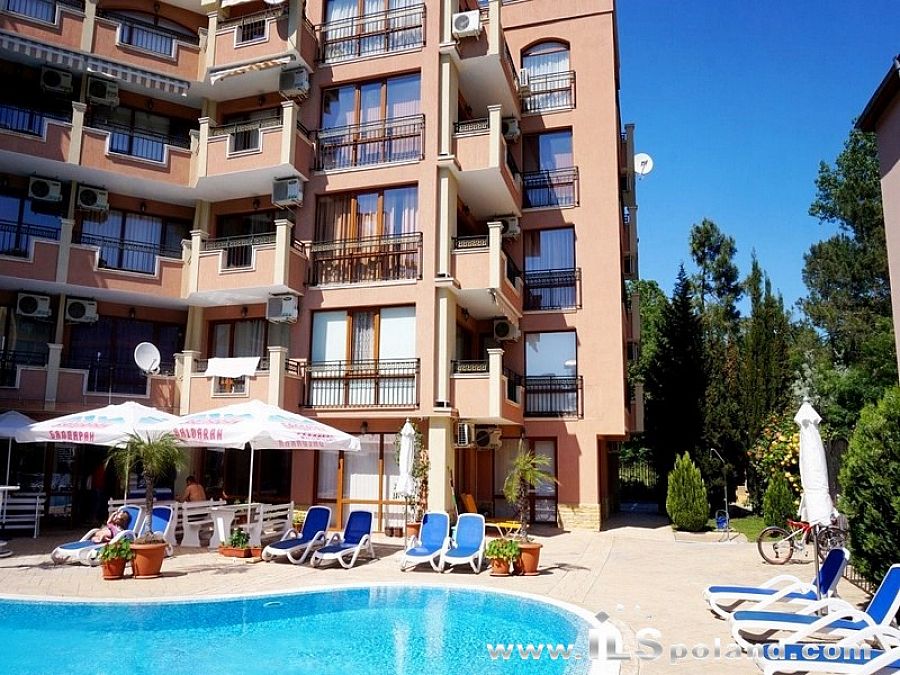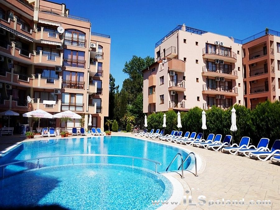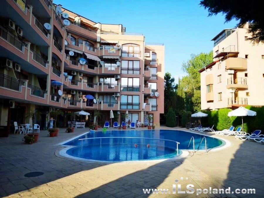 Przestronny apartament z widokiem na basen oraz z umeblowaniem i wyposażeniem w bardzo okazyjnej cenie, w całorocznym kompleksie apartamentowo hotelowym Antares, zlokalizowanym w północno-zachodniej, bardzo spokojnej części, znanego bułgarskiego kurortu nadmorskiego Słoneczny Brzeg, zaledwie 350 m od plaży nad Morzem Czarnym w Bułgarii.