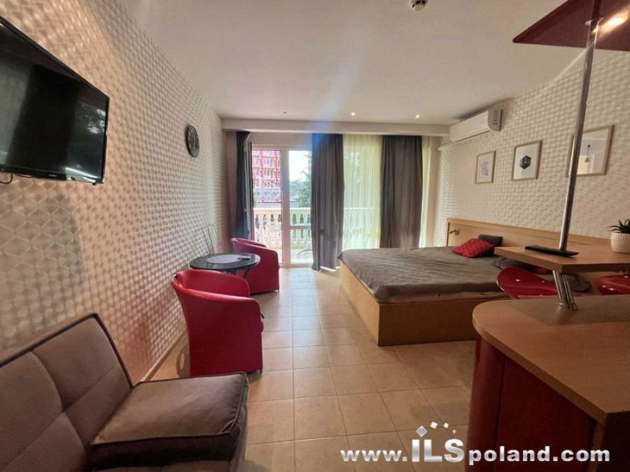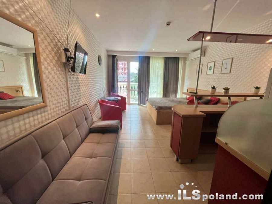 Kompaktowy apartament z umeblowaniem i wyposażeniem w wyjątkowo okazyjnej cenie, w pięciogwiazdkowym kompleksie hotelowym Planeta, w wydzielonej, całorocznej części prywatnej Miramar Palace, w najbardziej znanym bułgarskim kurorcie Słoneczny Brzeg nad Morzem Czarnym w Bułgarii, w odległości zaledwie 70 m od szerokiej i piaszczystej plaży.