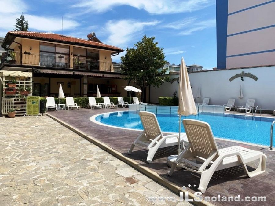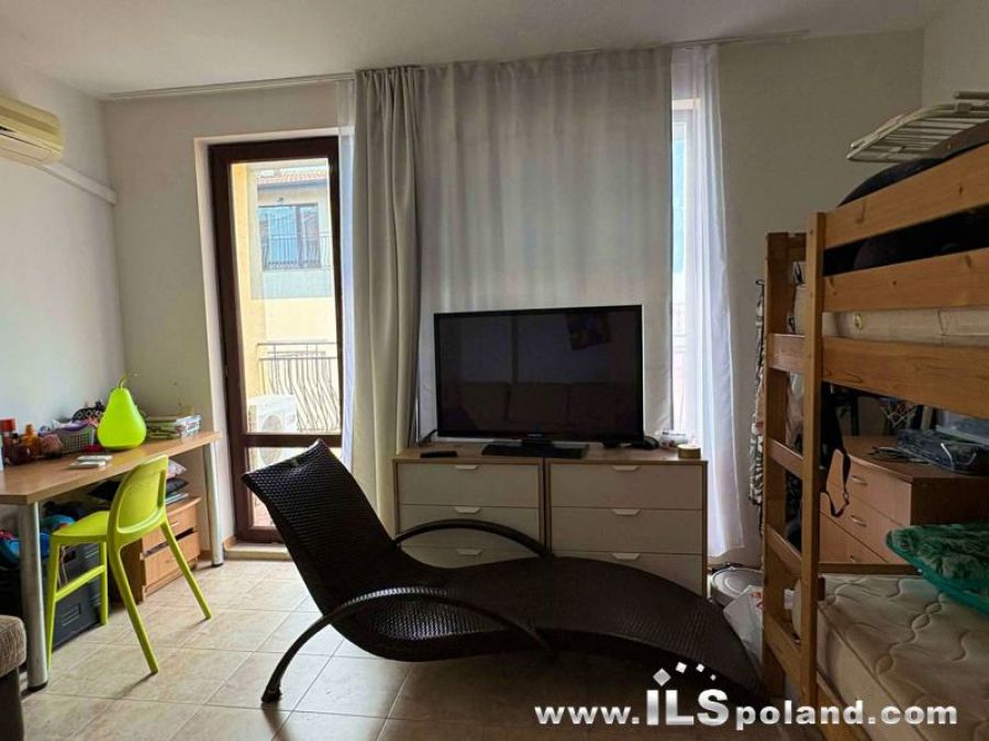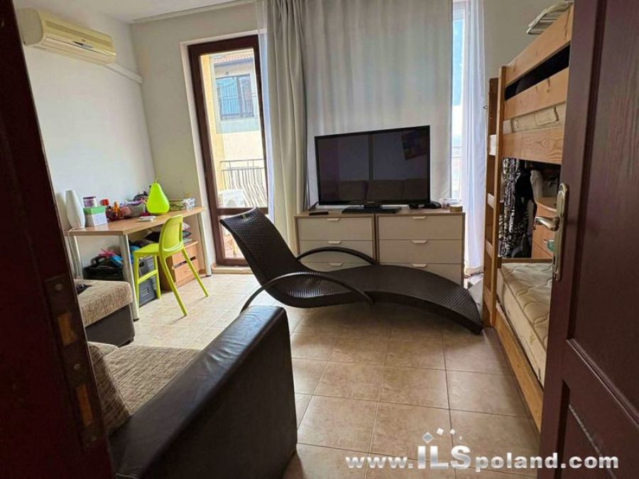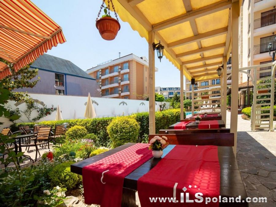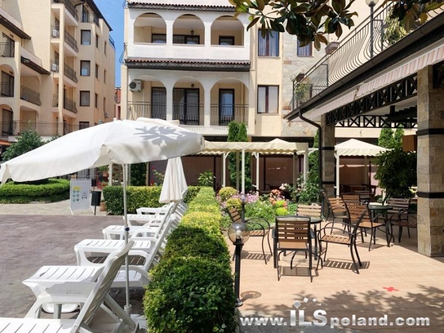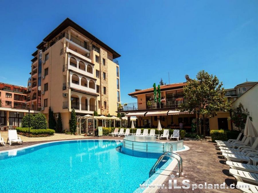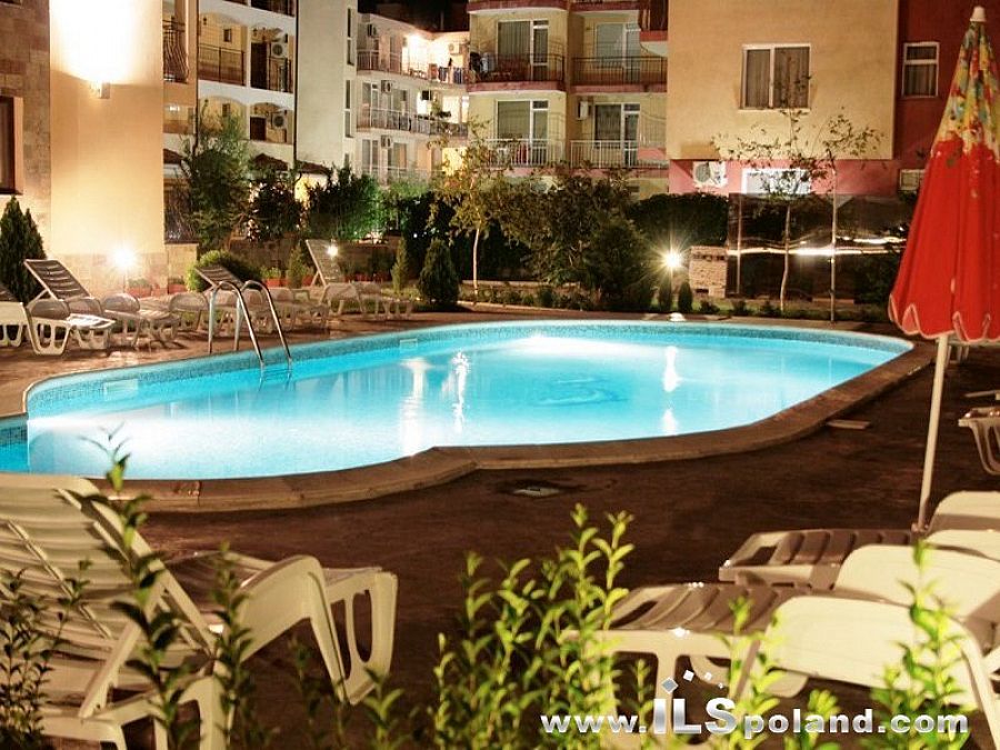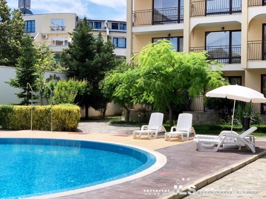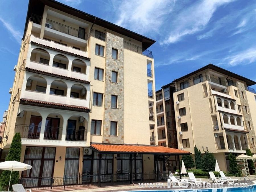 Przestronny apartament trzypokojowy z widokiem na basen oraz z umeblowaniem i wyposażeniem w eleganckim, całorocznym kompleksie apartamentowym Rose Village, w najbardziej znanym bułgarskim kurorcie Słoneczny Brzeg nad Morzem Czarnym w Bułgarii, w odległości zaledwie 300 m od najbardziej znanej plaży Cacao Beach.