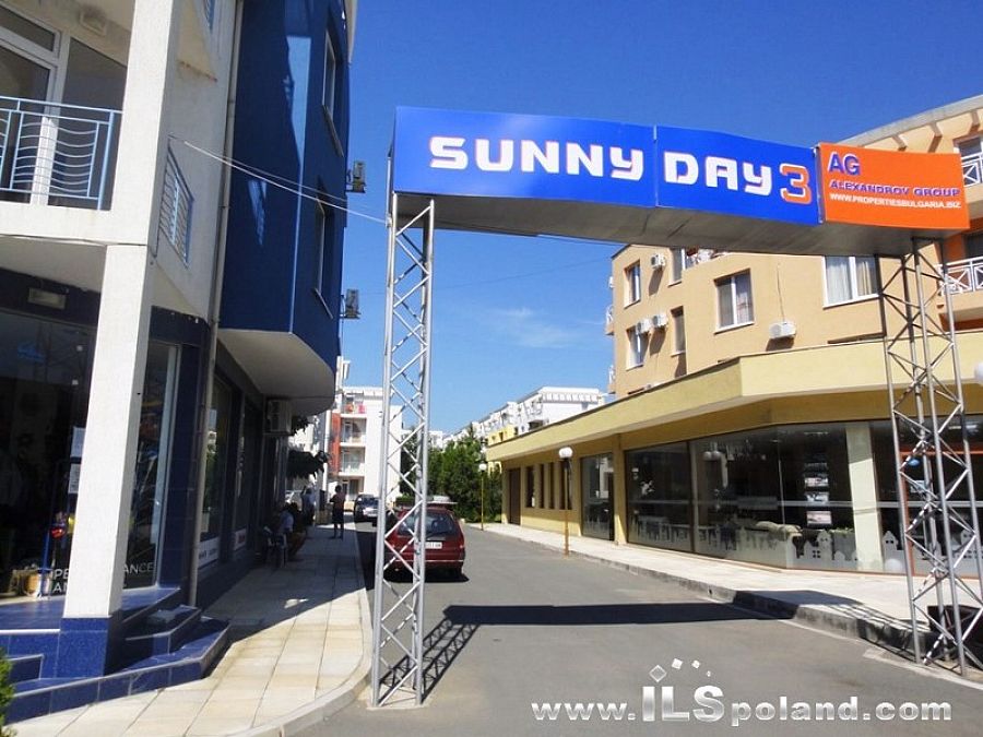 Kompleks Sunny Day 3 to zespół budynków na ogrodzonym i elegancko urządzonym ogrodzie, położony w centralnej części kurortu Słoneczny Brzeg, 950 m od plaży i jedyne 700 m od nadmorskiej promenady, gdzie znajdują się liczne sklepy, tawerny i restauracje oraz centrum rozrywek z pubami i klubami disco, a także przystanki kolejki chu-chu, kursującej uliczkami kurortu.