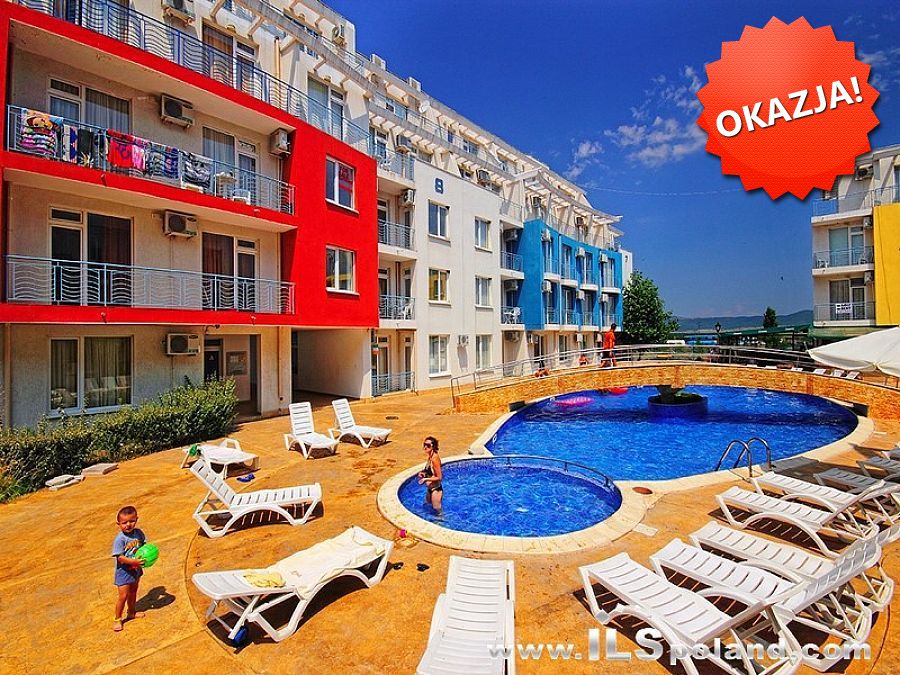 Prezentowany apartament jest jednopokojowy typu studio o powierzchni całkowitej 28,00 m² i powierzchni użytkowej 23,06 m² (obszerną galerię aż 57 fotografii z zewnątrz kompleksu i z wnętrza apartamentu, film MP4 z wnętrza mieszkania oraz dokładną lokalizację na mapie prezentujemy wyłącznie w naszym, firmowym serwisie: WWW.ILSPOLAND.COM), a położony jest na parterze (pierwsza kondygnacja) w budynku 3 (budynek bez windy) w bardzo popularnym wśród naszych rodaków Polaków kompleksie SUNNY DAY 3 w najbardziej znanym i popularnym turystycznie bułgarskim kurorcie Słoneczny Brzeg.
