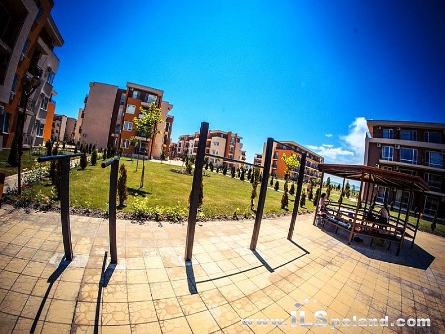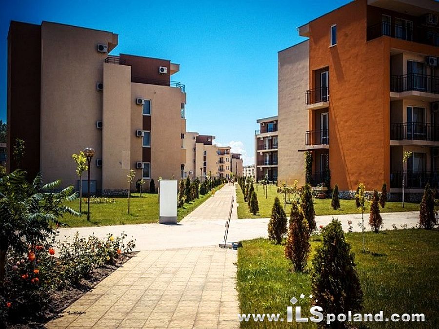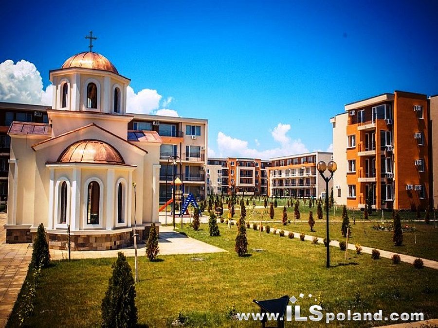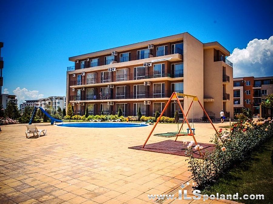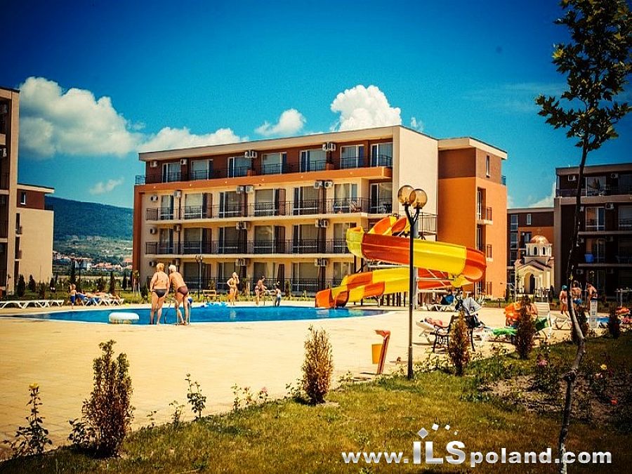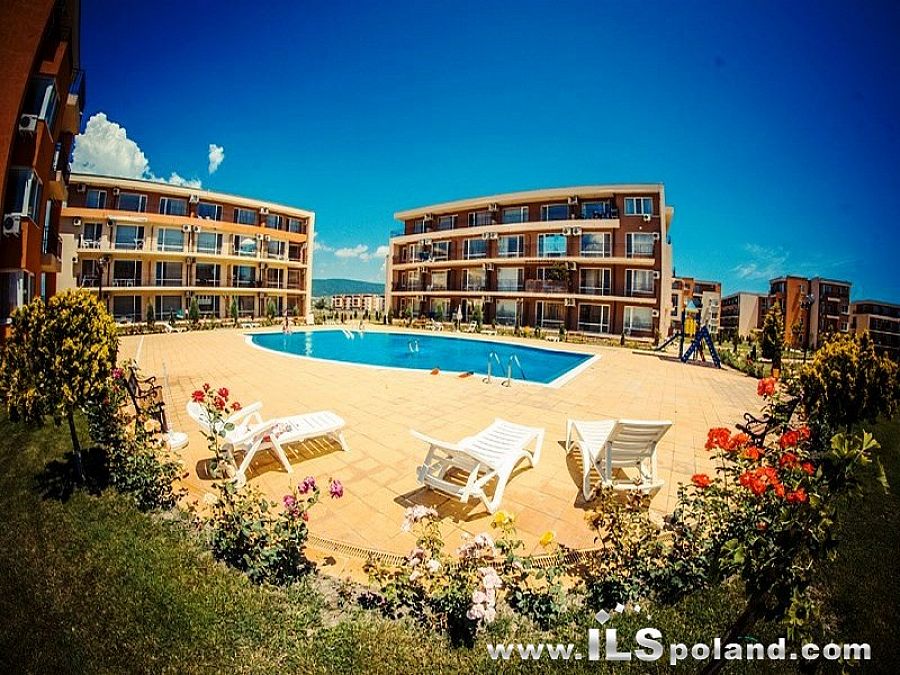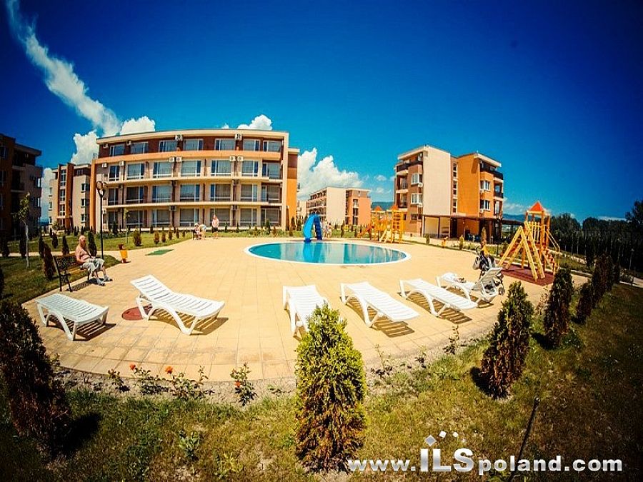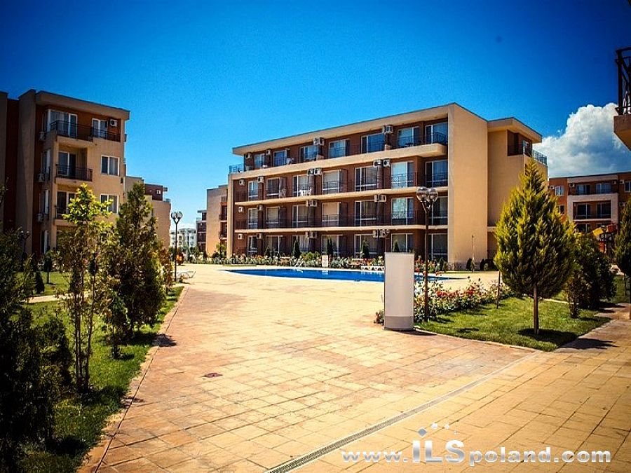 Elegancki apartament jednopokojowy typu studio o powierzchni całkowitej 39,50 m² i powierzchni użytkowej 34,18 m² (obszerną galerię aż 67 fotografii z zewnątrz kompleksu i z wnętrza apartamentu, film MP4 z wnętrza mieszkania oraz rzut kondygnacji, a także plan kompleksu oraz dokładną lokalizację na mapie prezentujemy wyłącznie w naszym, firmowym serwisie: WWW.ILSPOLAND.COM), położony jest na wysokim parterze w bardzo popularnym wśród turystów z całej Europy, całorocznym kompleksie Holiday Fort Golf Club w najbardziej znanym i popularnym turystycznie bułgarskim kurorcie Słoneczny Brzeg.