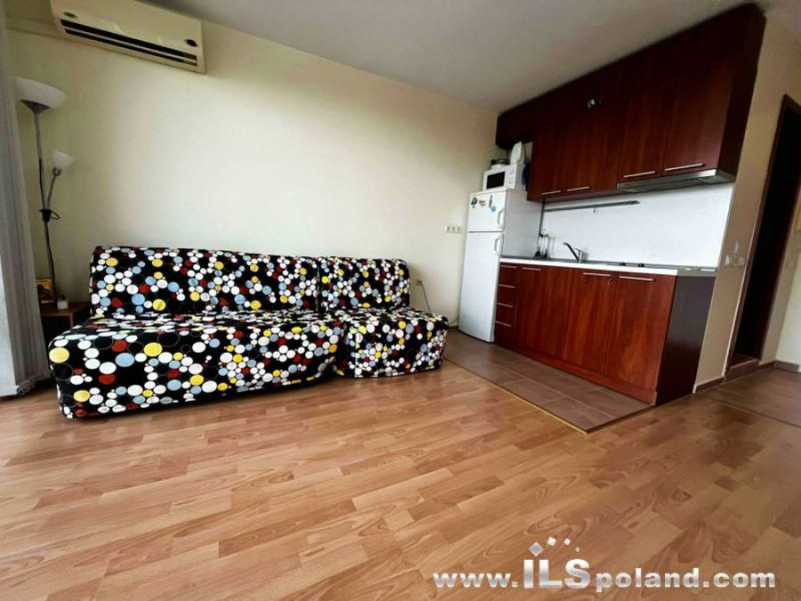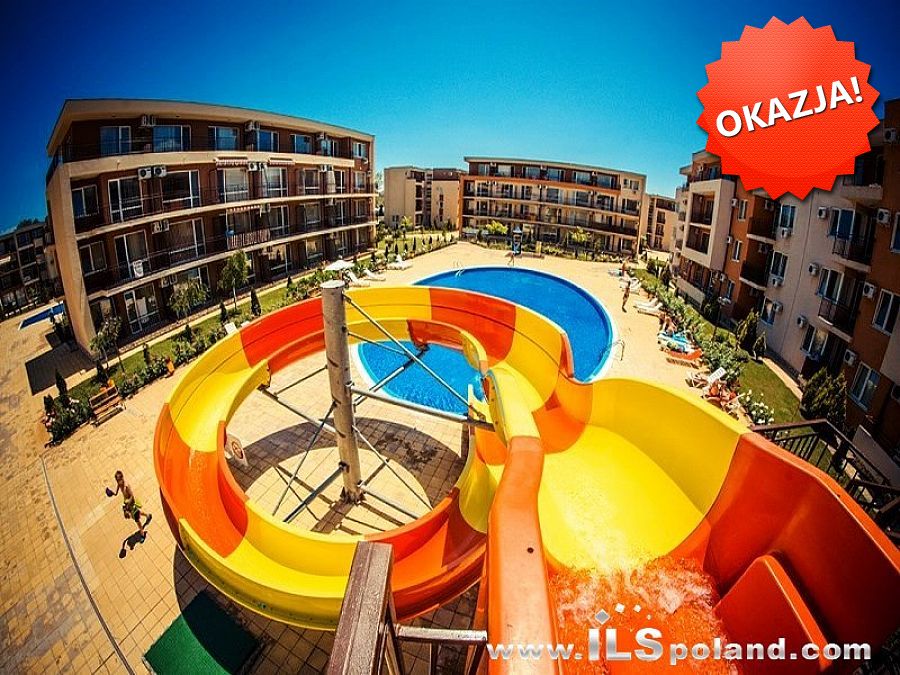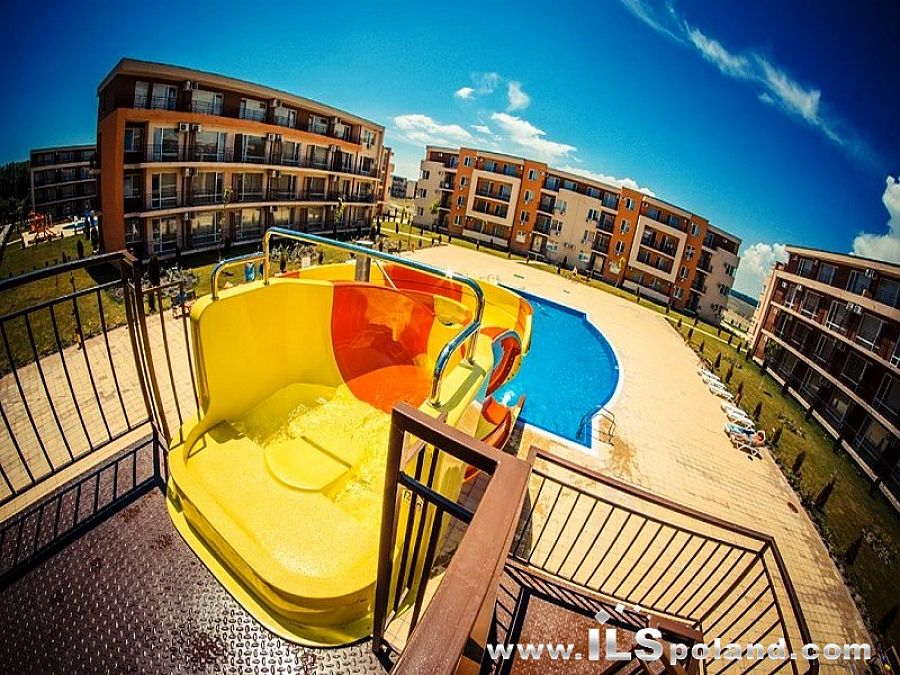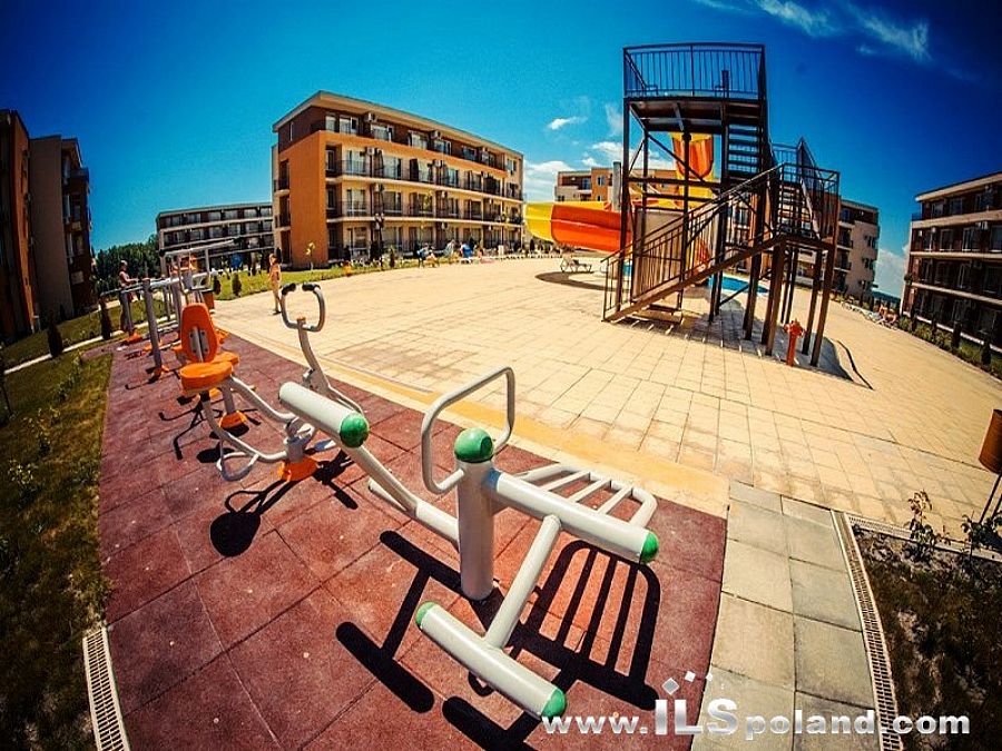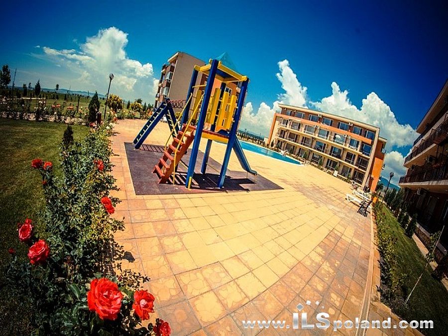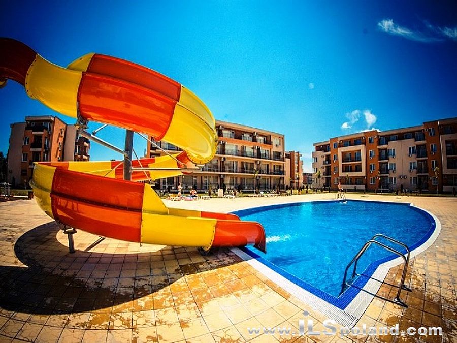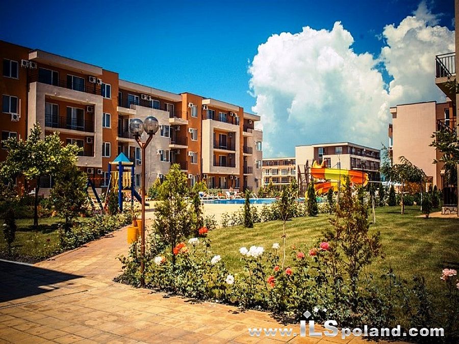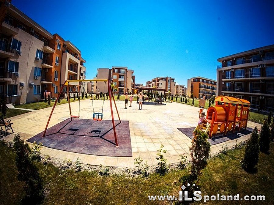 Elegancki apartament jednopokojowy typu studio o powierzchni całkowitej 39,50 m² i powierzchni użytkowej 34,18 m² (obszerną galerię aż 67 fotografii z zewnątrz kompleksu i z wnętrza apartamentu, film MP4 z wnętrza mieszkania oraz rzut kondygnacji, a także plan kompleksu oraz dokładną lokalizację na mapie prezentujemy wyłącznie w naszym, firmowym serwisie: WWW.ILSPOLAND.COM), położony jest na wysokim parterze w bardzo popularnym wśród turystów z całej Europy, całorocznym kompleksie Holiday Fort Golf Club w najbardziej znanym i popularnym turystycznie bułgarskim kurorcie Słoneczny Brzeg.