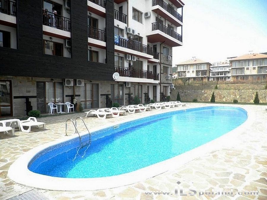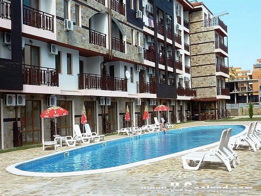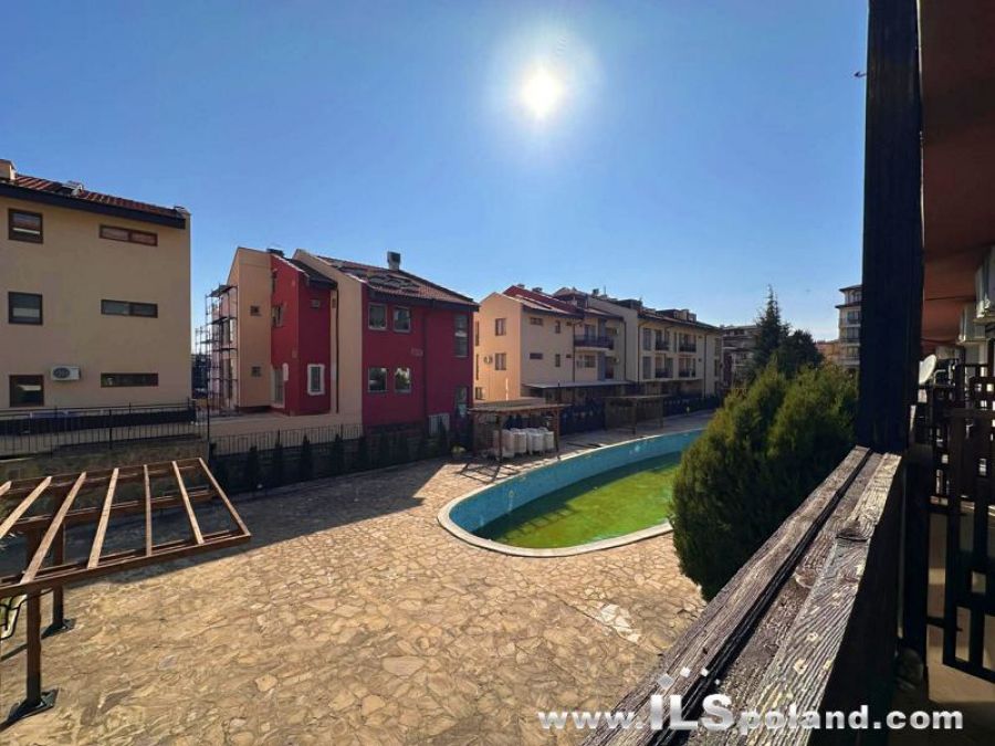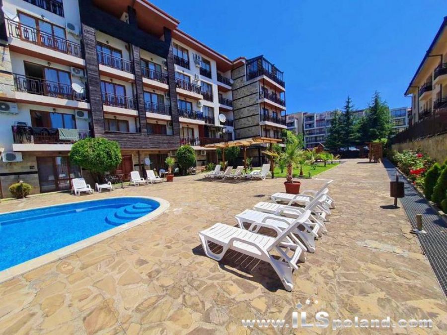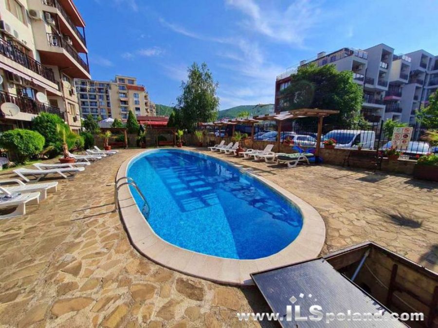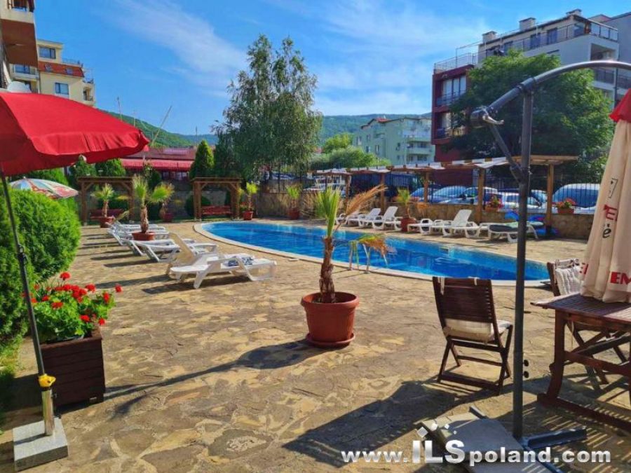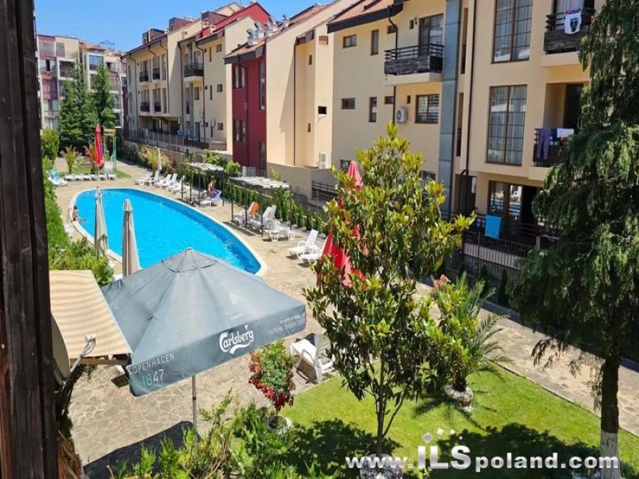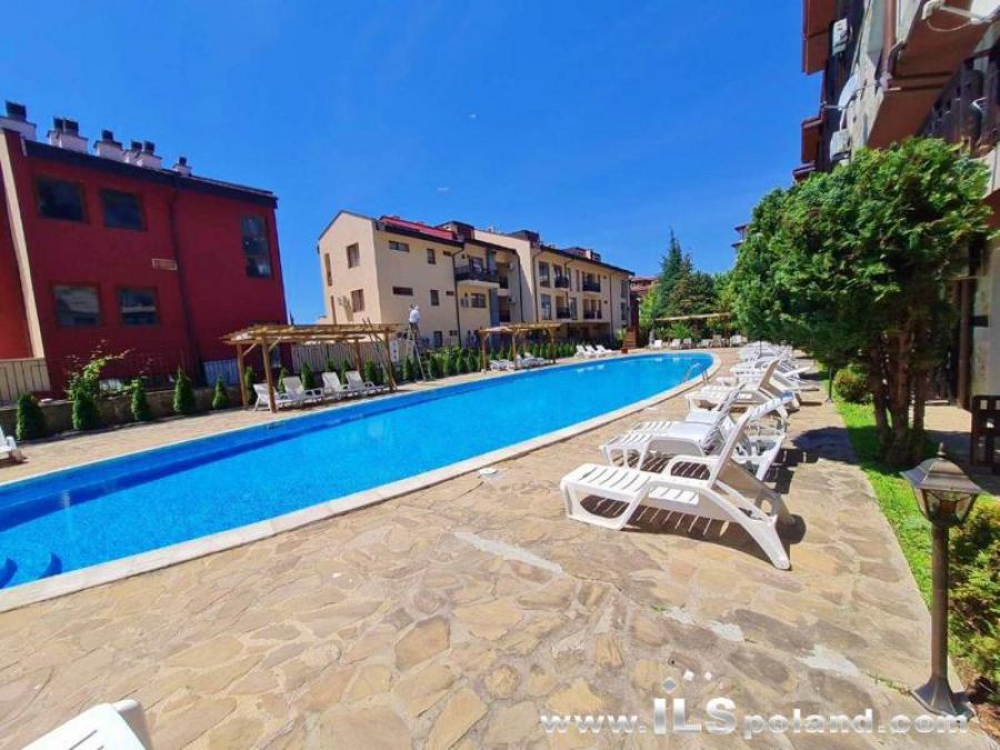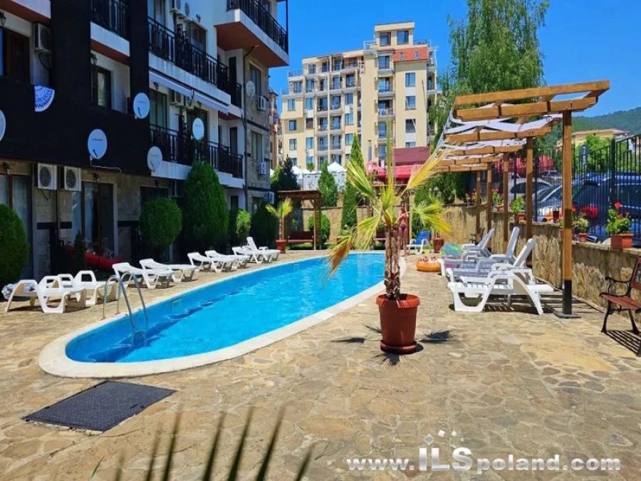 Kompaktowy apartament z umeblowaniem i wyposażeniem oraz widokiem na basen w okazyjnej cenie w eleganckim, całorocznym kompleksie Panorama Bay 2, zlokalizowanym w luksusowej i spokojnej części znanego bułgarskiego kurortu nadmorskiego Sveti Vlas nad Morzem Czarnym w Bułgarii.