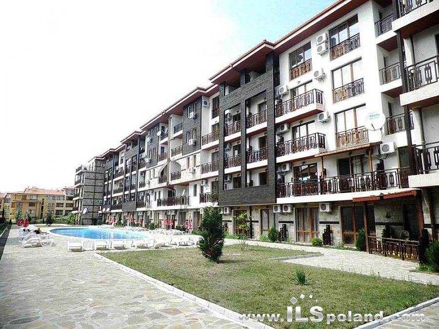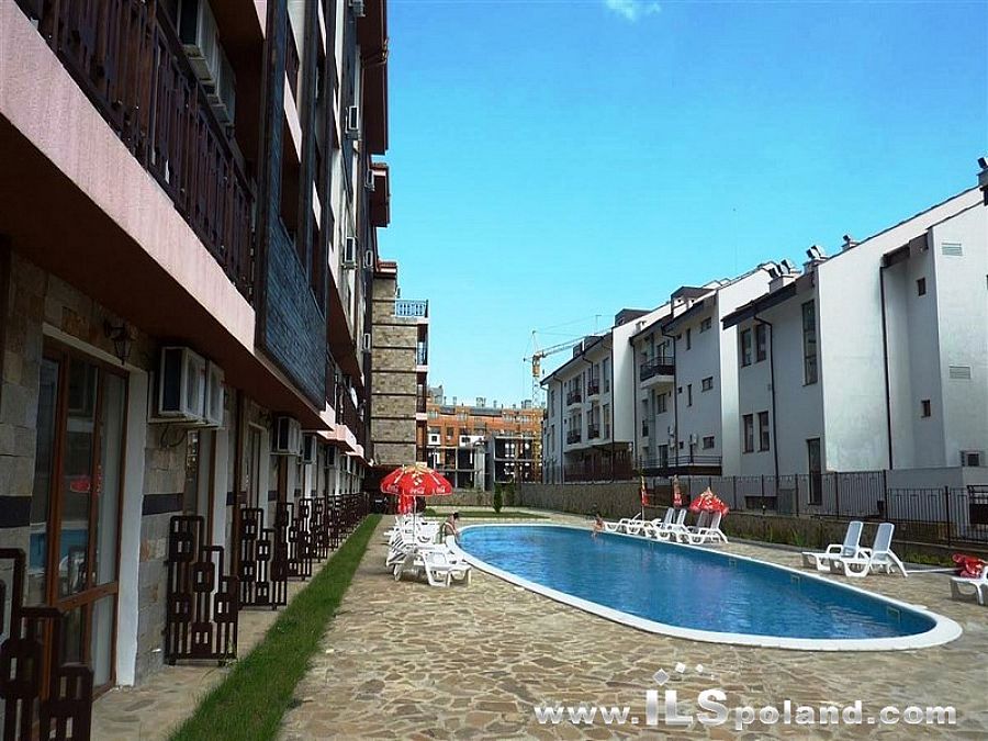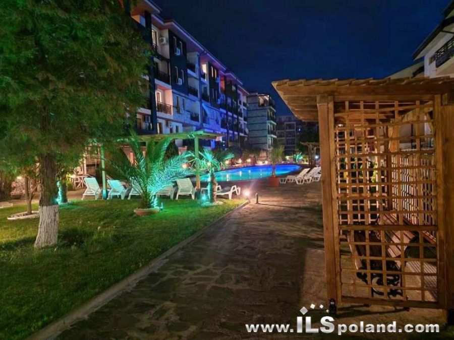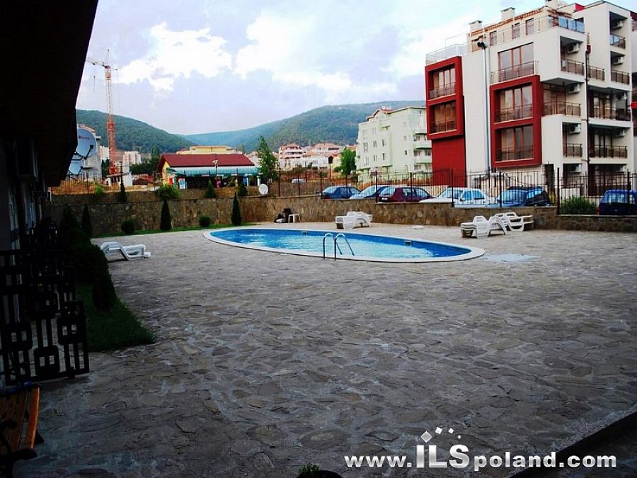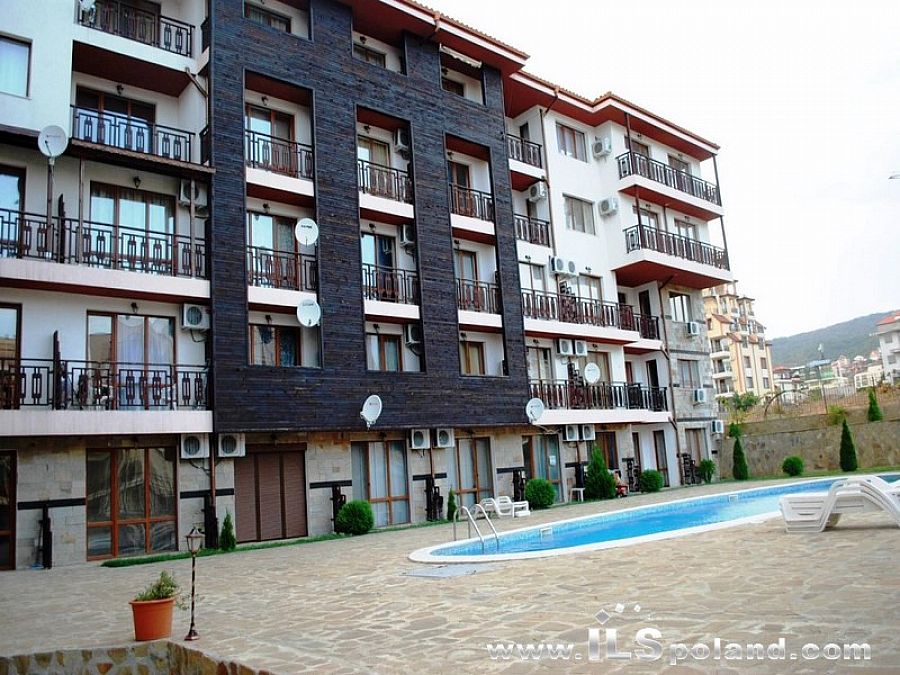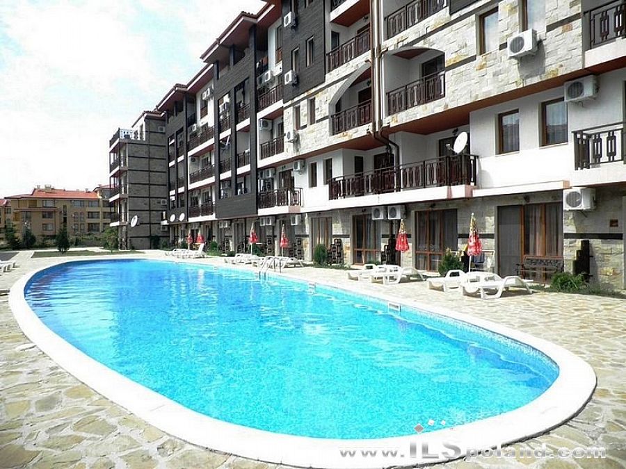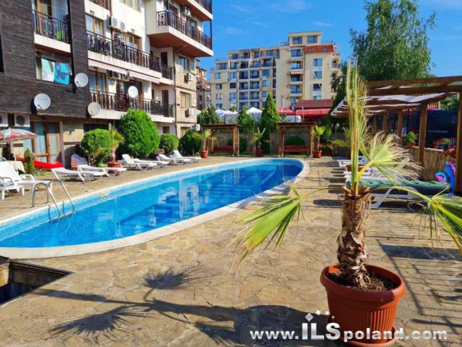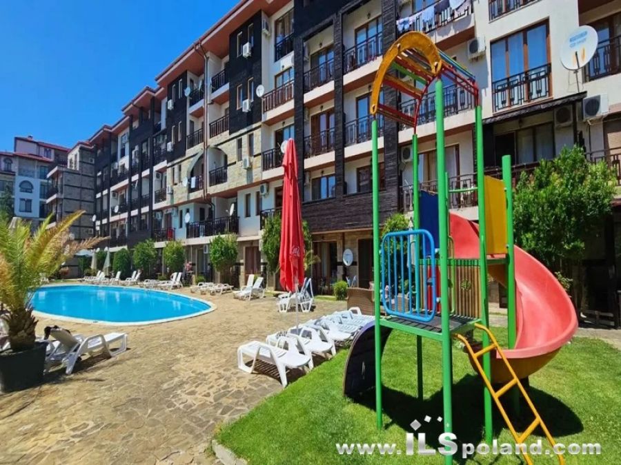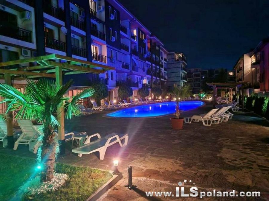 Kompaktowy apartament z umeblowaniem i wyposażeniem oraz widokiem na basen w okazyjnej cenie w eleganckim, całorocznym kompleksie Panorama Bay 2, zlokalizowanym w luksusowej i spokojnej części znanego bułgarskiego kurortu nadmorskiego Sveti Vlas nad Morzem Czarnym w Bułgarii.
