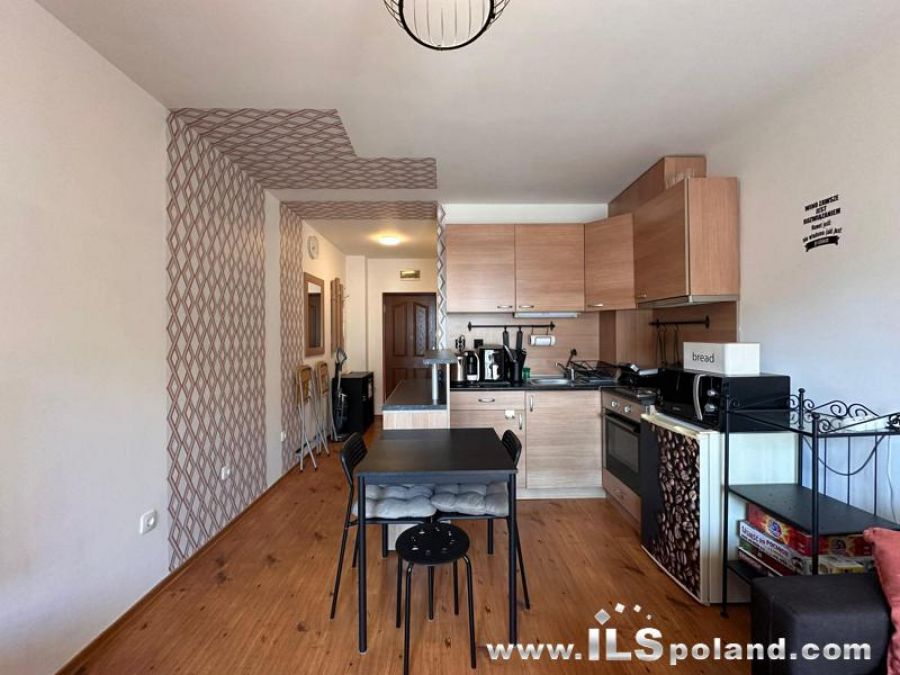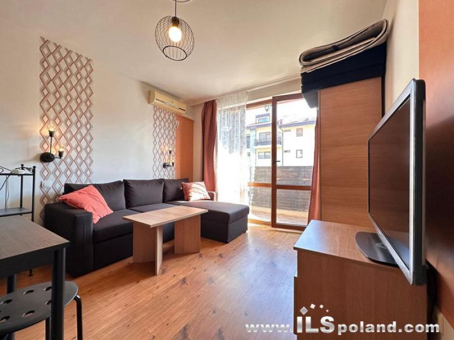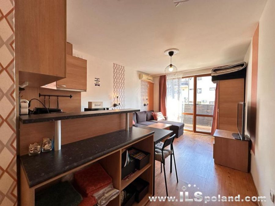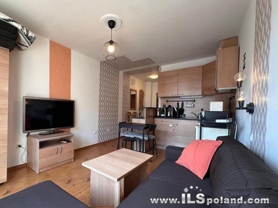 Prezentowany apartament to jednopokojowe mieszkanie typu studio o powierzchni całkowitej 41,57 m² i powierzchni użytkowej 31,00 m² (obszerną galerię aż 71 fotografii z zewnątrz kompleksu i z wnętrza apartamentu, film MP4 oraz dokładną lokalizację na mapie udostępniamy wyłącznie w naszym, firmowym serwisie WWW.ILSPOLAND.COM), a położony jest na 1. piętrze (2. kondygnacji- bułgarskie 2. piętro).