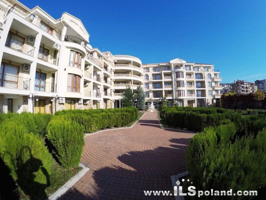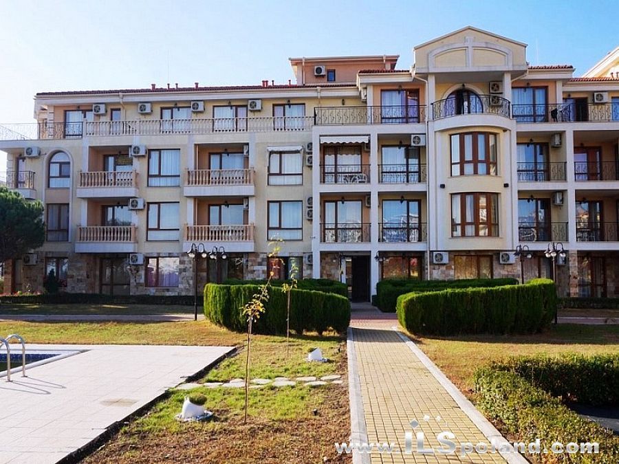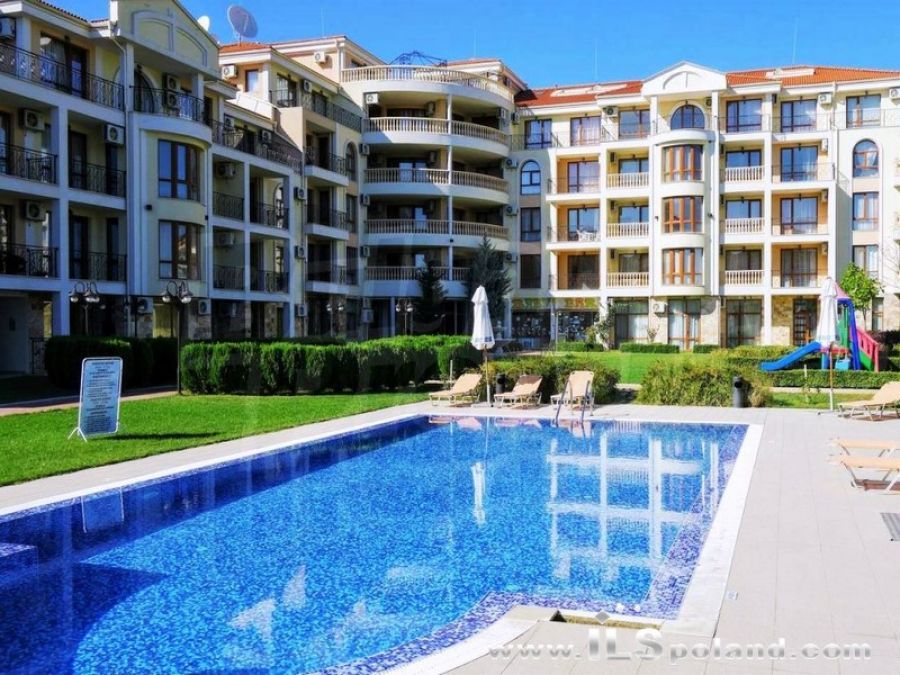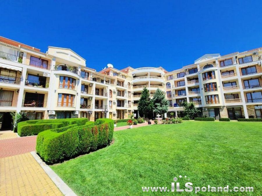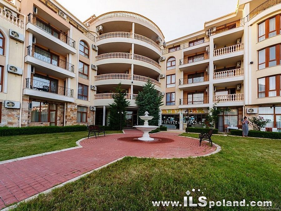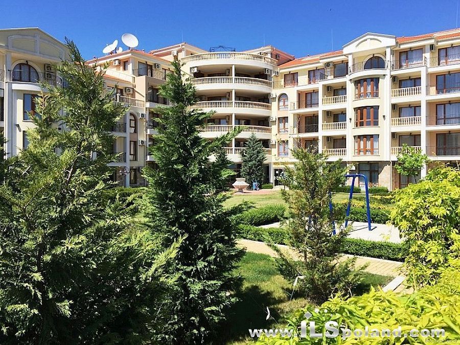 Kompaktowy apartament z umeblowaniem i wyposażeniem w okazyjnej cenie, w luksusowym, całorocznym kompleksie Royal Bay 2, zlokalizowanym w prestiżowej części znanego bułgarskiego kurortu nadmorskiego Sveti Vlas, w odległości zaledwie 100 m od plaży nad Morzem Czarnym w Bułgarii.