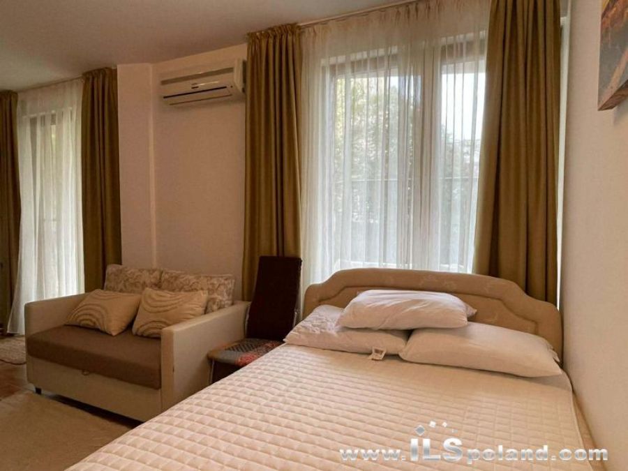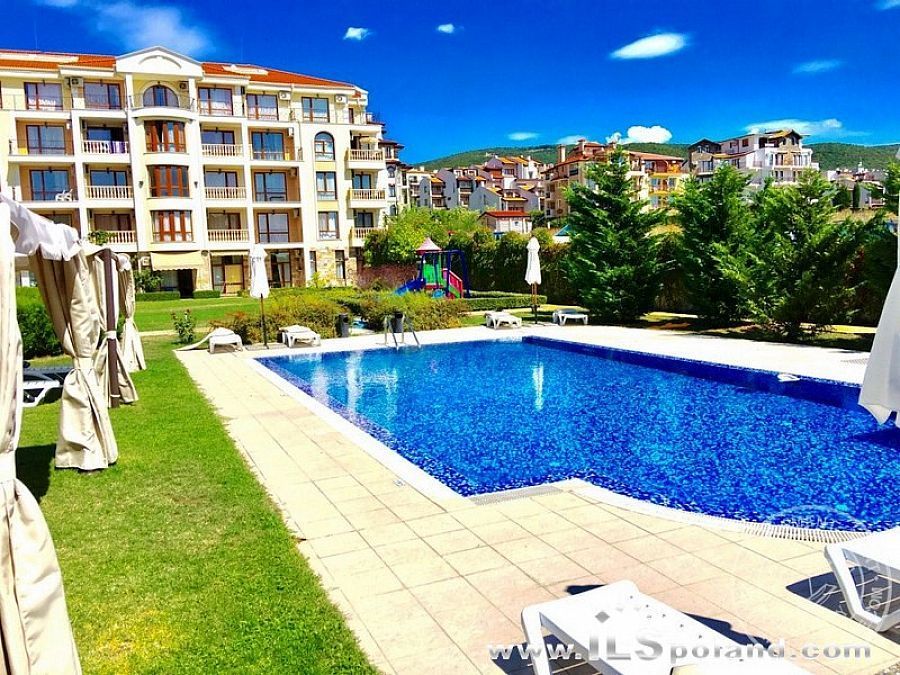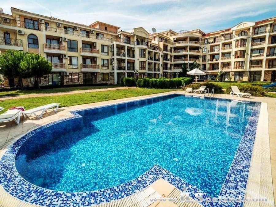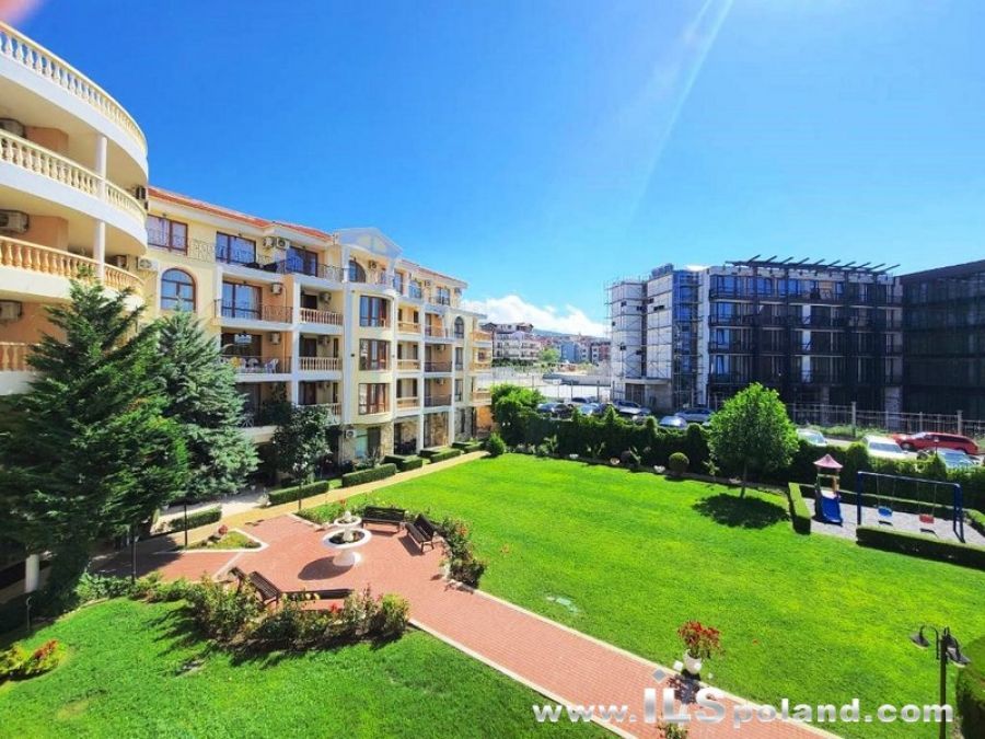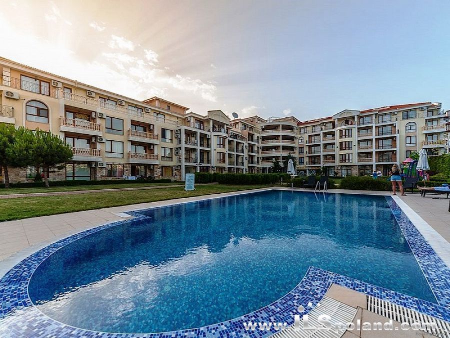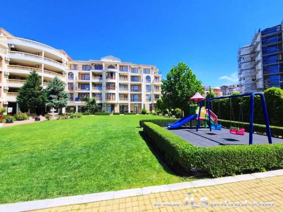 Kompaktowy apartament z umeblowaniem i wyposażeniem w okazyjnej cenie, w luksusowym, całorocznym kompleksie Royal Bay 2, zlokalizowanym w prestiżowej części znanego bułgarskiego kurortu nadmorskiego Sveti Vlas, w odległości zaledwie 100 m od plaży nad Morzem Czarnym w Bułgarii.