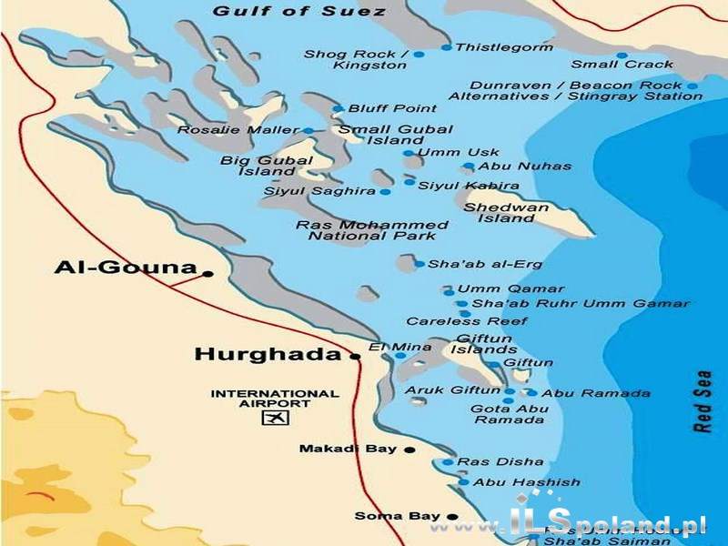 Hurghada przyciąga nie tylko starożytnymi zabytkami, ale również krajobrazem pustynnym, malowniczym łańcuchem górskim, lazurowe wybrzeże urozmaicone małymi wysepkami i cudownymi rafami koralowymi oraz bogaty wybór sportów wodnych i długie, piaszczyste plaże, na których można zażywać kąpieli słonecznych wśród palm.