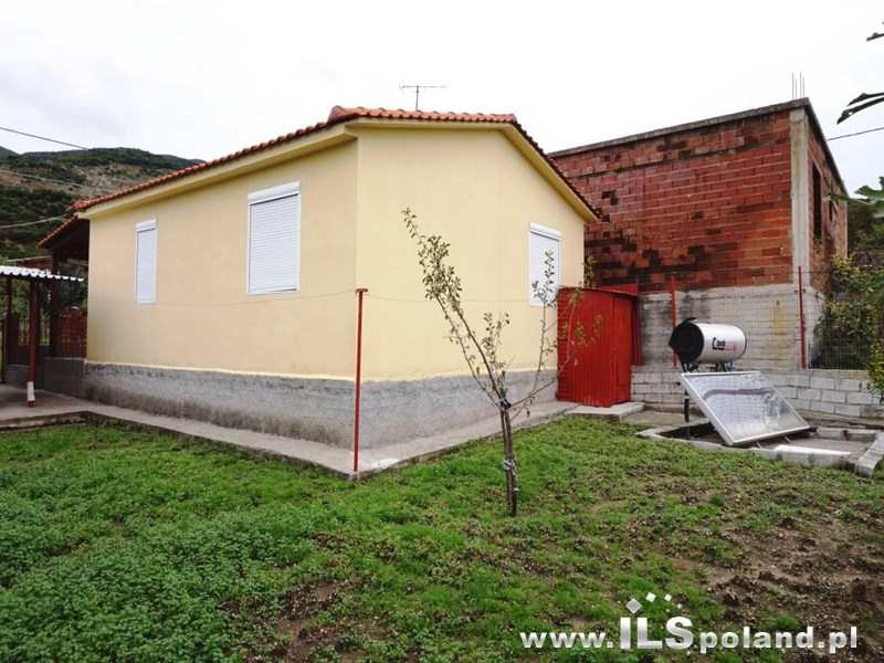 Dom wybudowany z elementów składanych na betonowym fundamencie z dwuspadowym dachem pokrytym dachówką ceramiczną, strop drewniany. Ogrzewania stałego nie posiada, ciepła woda z elektrycznego bojlera i paneli słonecznych. Wewnątrz domu podłogi wyłożone płytkami ceramicznymi, okna i drzwi plastikowe nowego typu. W cenie sprzedaży zawarte jest pełne umeblowanie i wyposażanie. Dojazd do domu drogą asfaltową, a ostatnie 100m utwardzoną.
